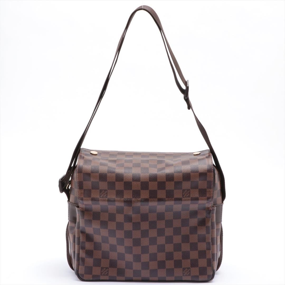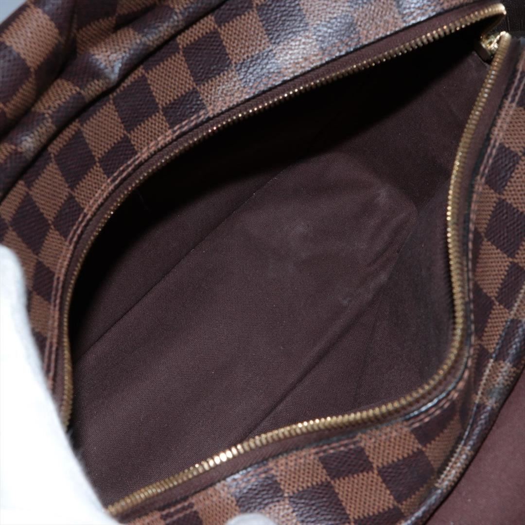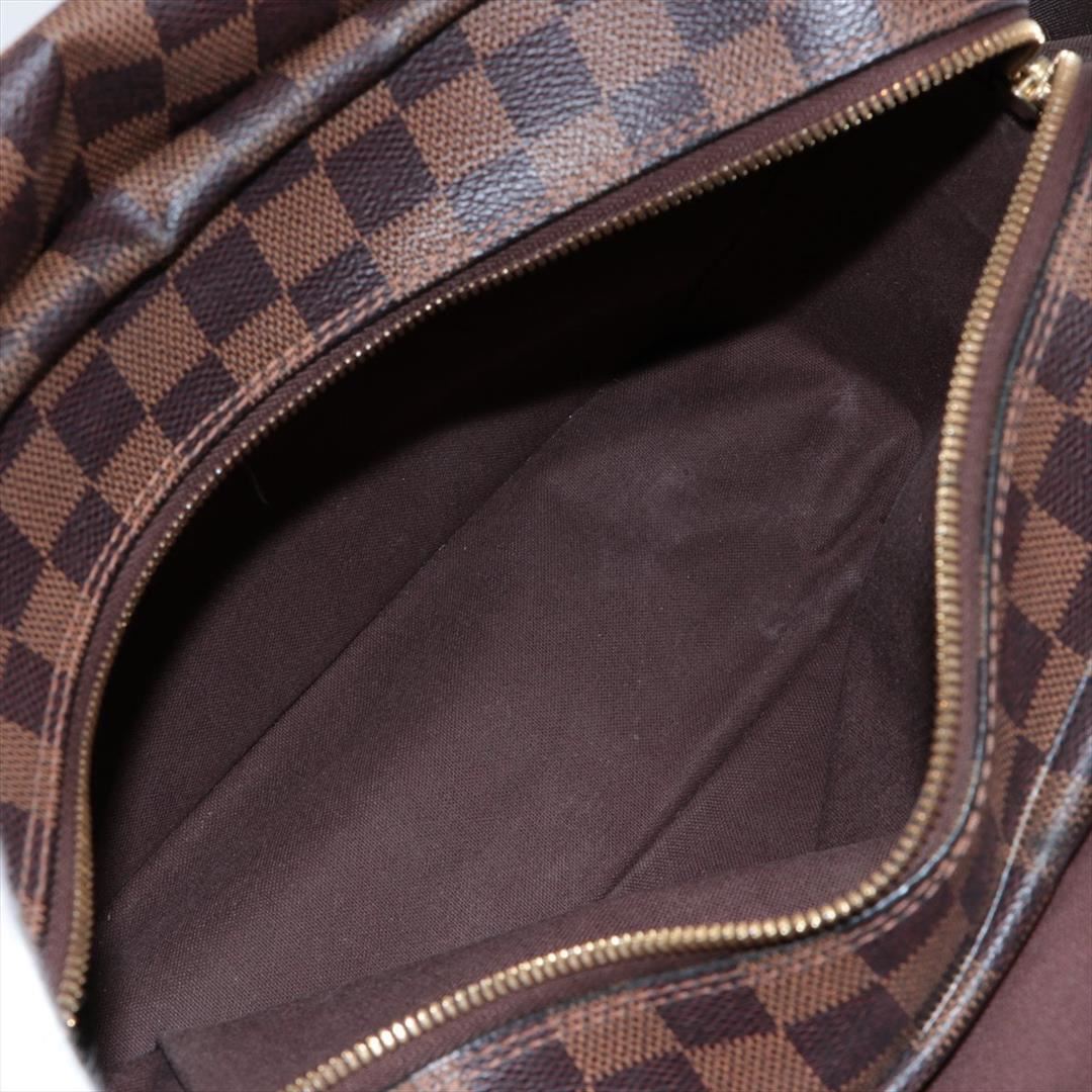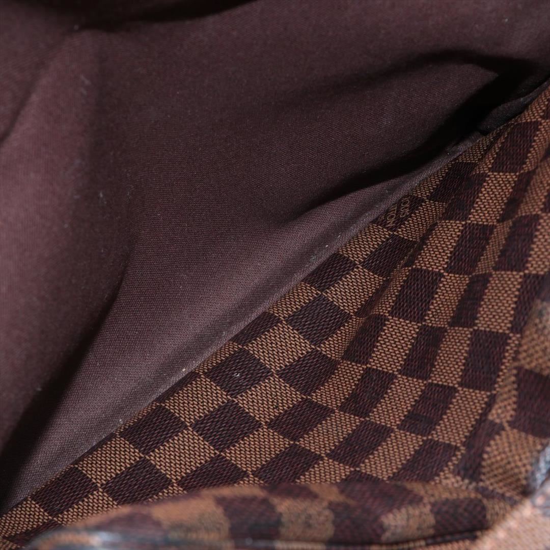 Brown and tan Damier Ebene coated canvas Louis Vuitton Naviglio messenger bag with brass hardware, walnut leather trim, single adjustable flat shoulder strap, three interior compartments; one with zip closure, terracotta woven lining, single slip pocket at interior wall and dual snap closures at top. Shop AUTHENTIC Louis Vuitton bags at MARQUE. 13"x3"x11"xBag Drop:21"/33cmx7.6cmx27.9cmxBag Drop:53.3cm