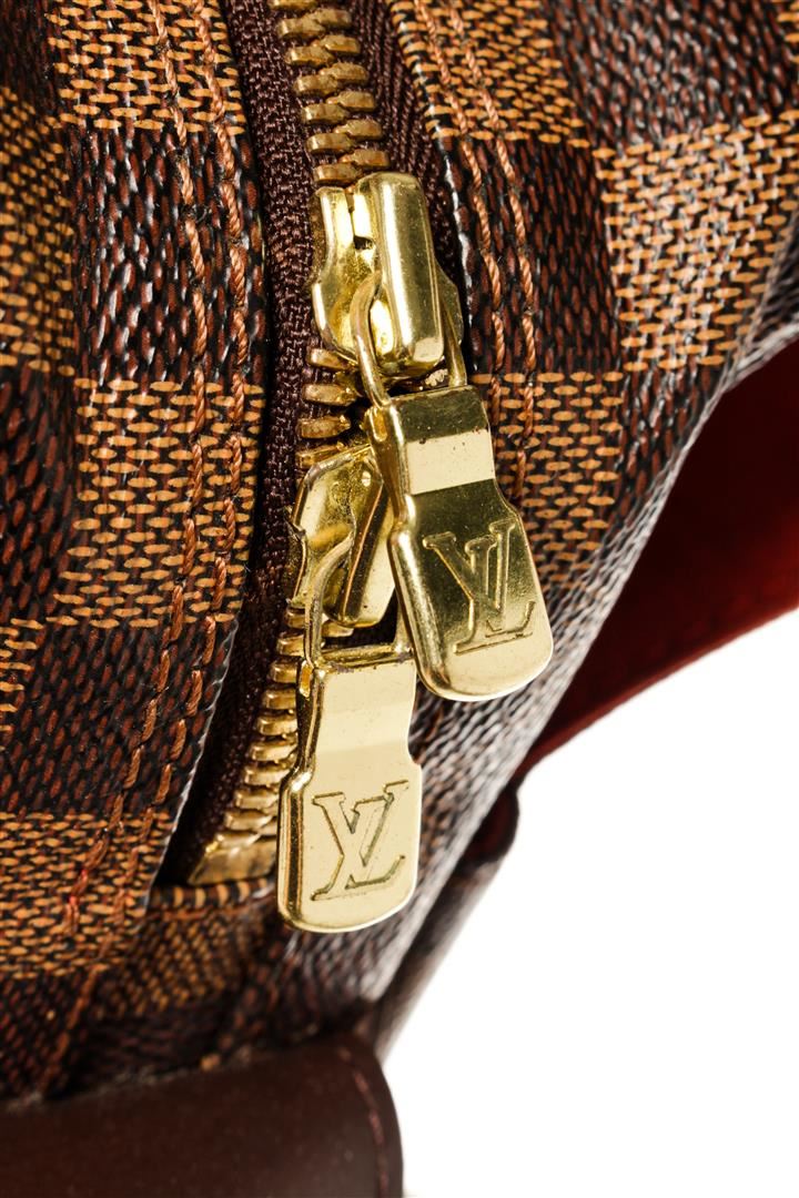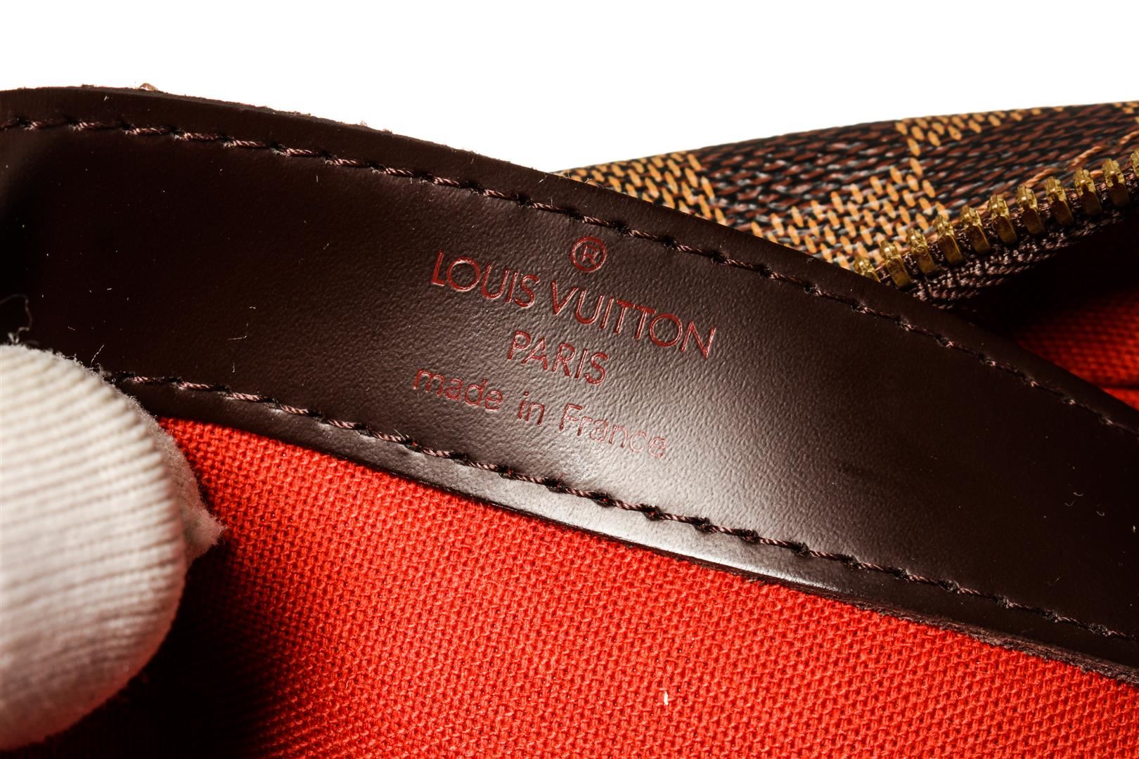 One Louis Vuitton Damier Ebene Naviglio Messenger Bag. Item is sold AS-IS. All available information is listed in the description and shown in the photo. Louis Vuitton Damier Ebene Naviglio Messenger Bag with gold-tone hardware, brown leather trim, red fabric lining, nylon strap, and top snap closures with a central zipper.