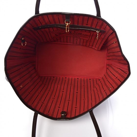 Crafted of classic Louis Vuitton damier checkered canvas with dark brown cowhide leather top shoulder straps and trim. This shoulder bag opens to an interior of rouge red striped fabric with a hanging zipper pocket.