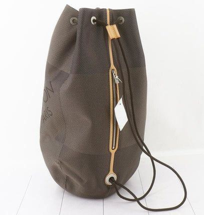 Louis Vuitton Toile Drawstring Backpack Bag features gray Damier Geant coated canvas, drawstring closure and ultra-spacious interior make carrying your essentials super easy. It has a small exterior zip pocket for your phone keys or wallet, one flat pocke