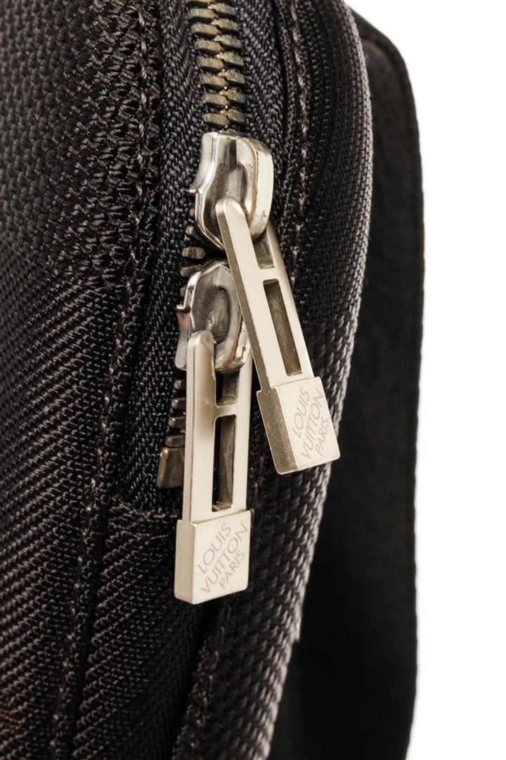 One Louis Vuitton Damier Geant Mage Waist Shoulder Bag. Item is sold AS-IS. All available information is listed in the description and shown in the photo. Louis Vuitton Damier Geant Mage Waist Shoulder Bag with silver-tone hardware, adjustable woven shoulder strap, brown taiga leather interior, dual card slots, single mesh compartment, money clip holder, zip mesh pocket and zip closure at parameters.