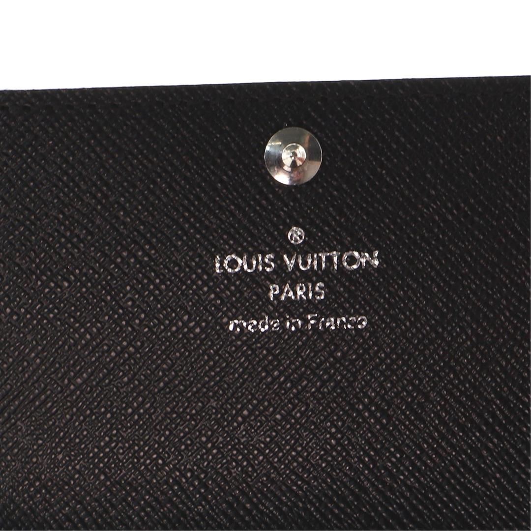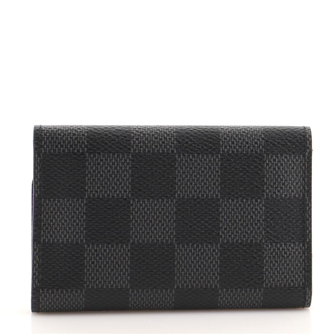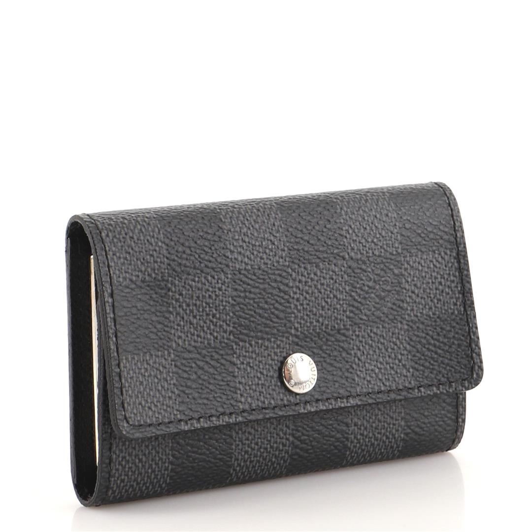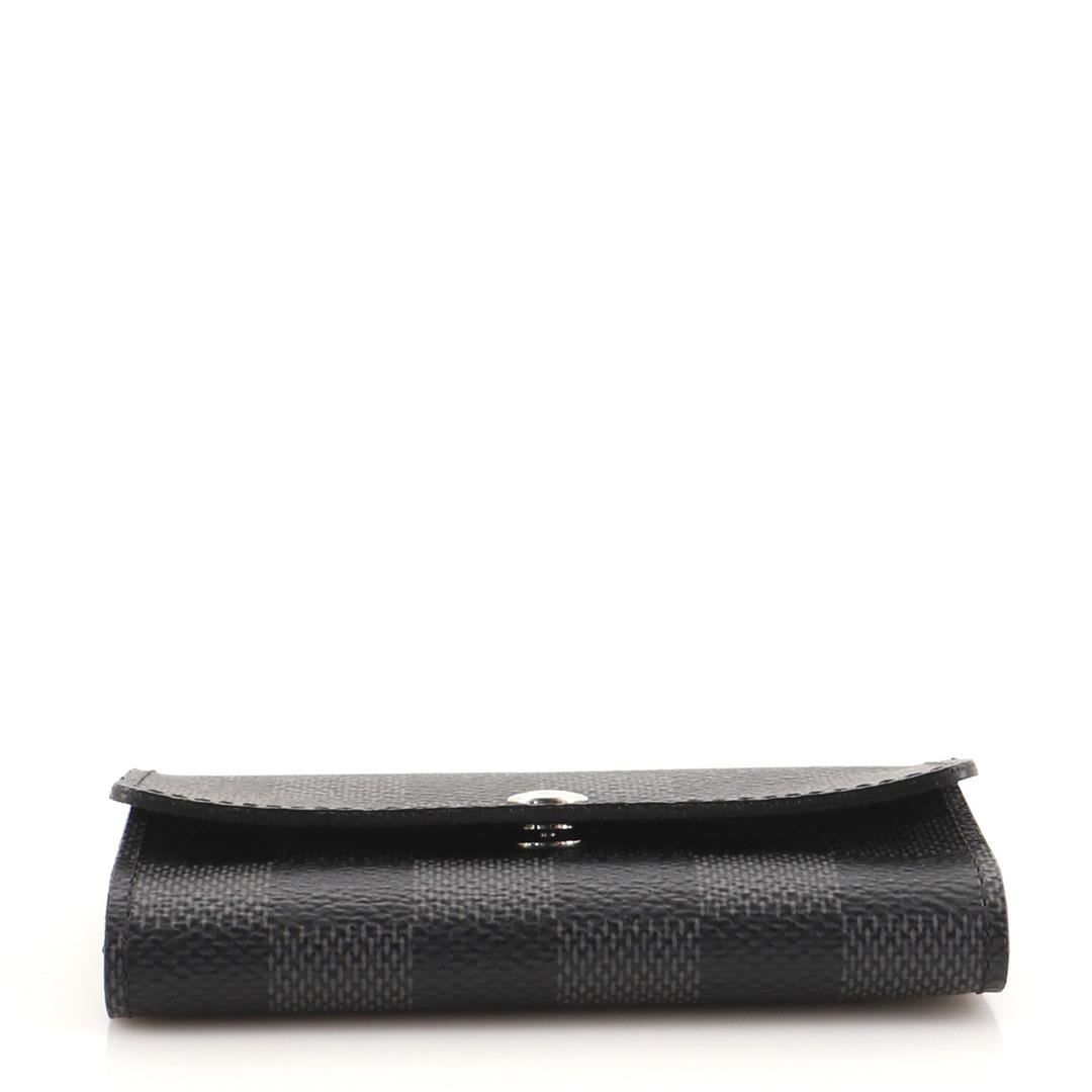 This compact case holds six keys on individual golden brass hooks. In Damier Graphite coated canvas, grained calf leather lining, snapped closure, it is a practical accessory for a handbag or briefcase. Height 3", Width 4", Depth 0.5"
