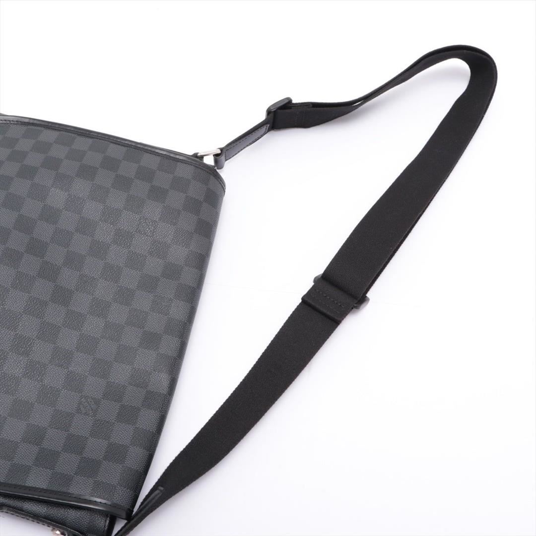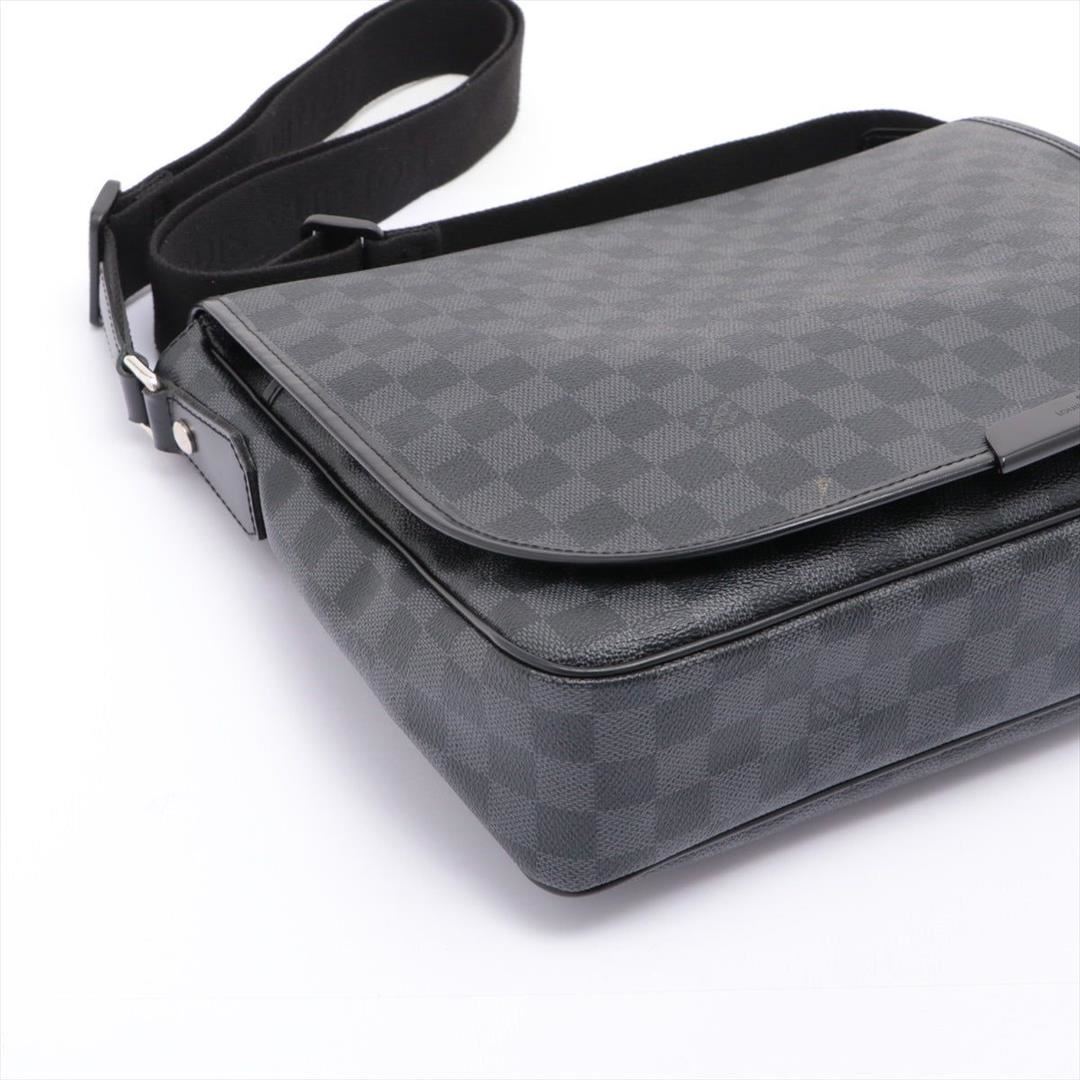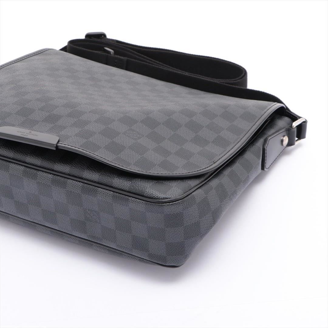 Black and charcoal Damier Graphite coated canvas Louis Vuitton Daniel MM with silver-tone hardware, black leather trim, adjustable flat shoulder strap, exterior zip pocket at back, slip pocket at flap underside, black woven lining, dual slip pockets at in