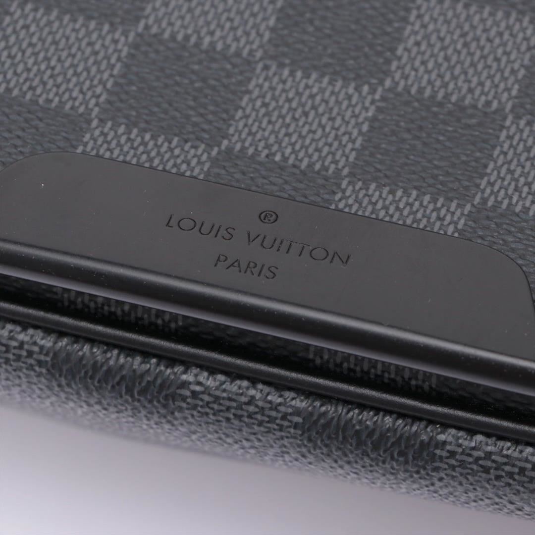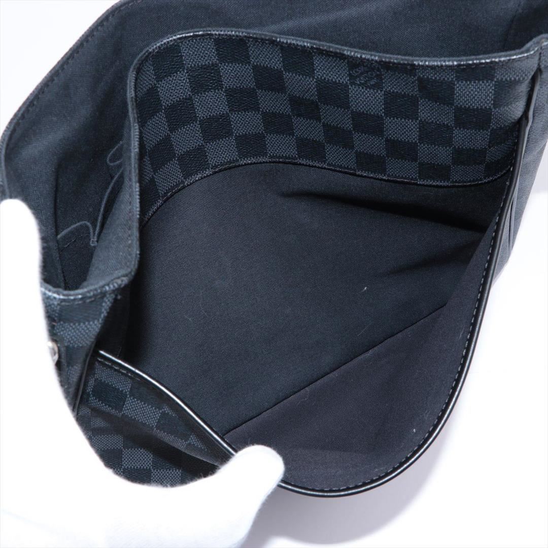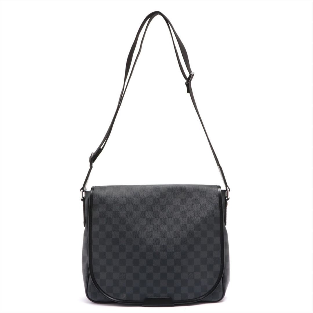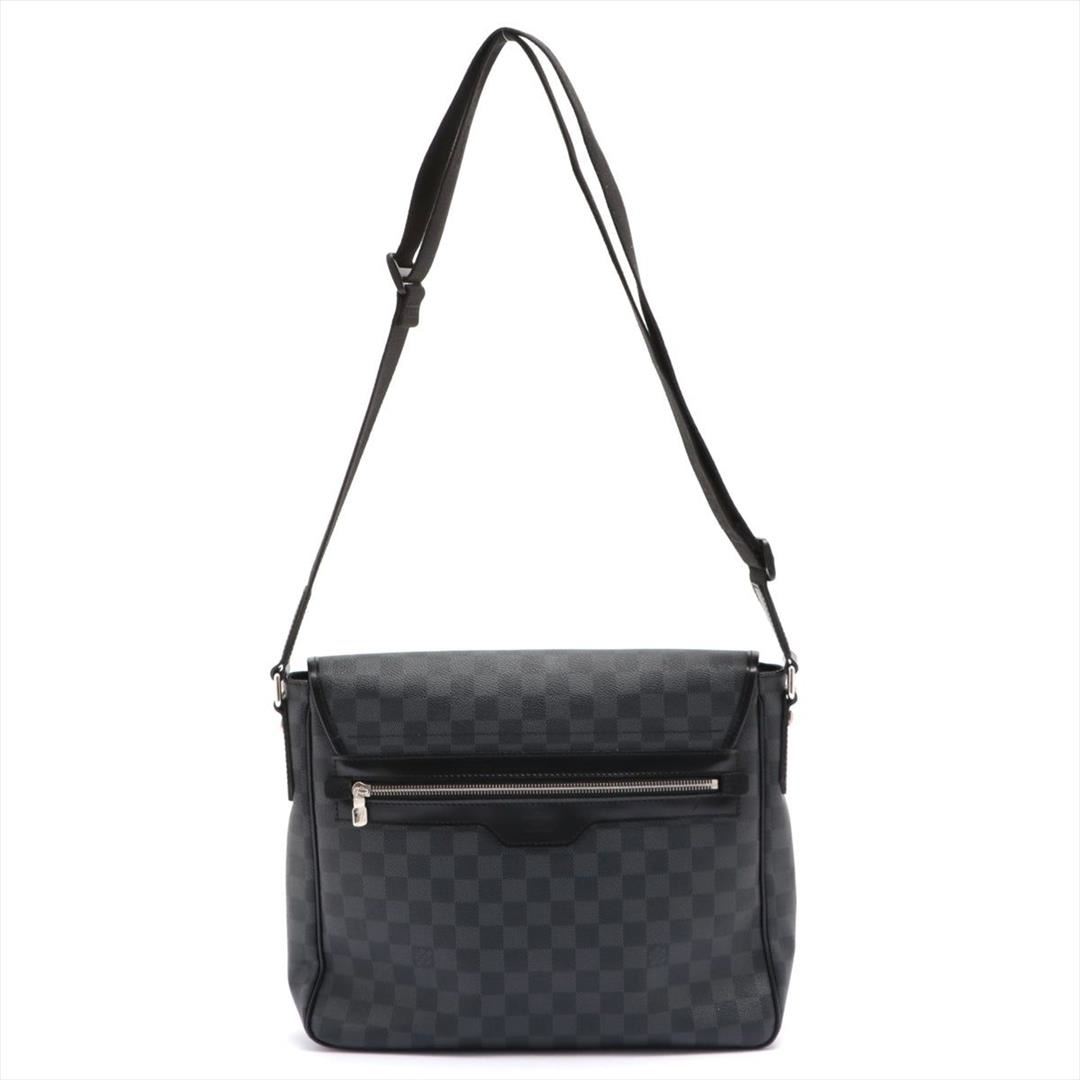Black and charcoal Damier Graphite coated canvas Louis Vuitton Daniel MM with silver-tone hardware, black leather trim, adjustable flat shoulder strap, exterior zip pocket at back, slip pocket at flap underside, black woven lining, dual slip pockets at in