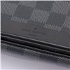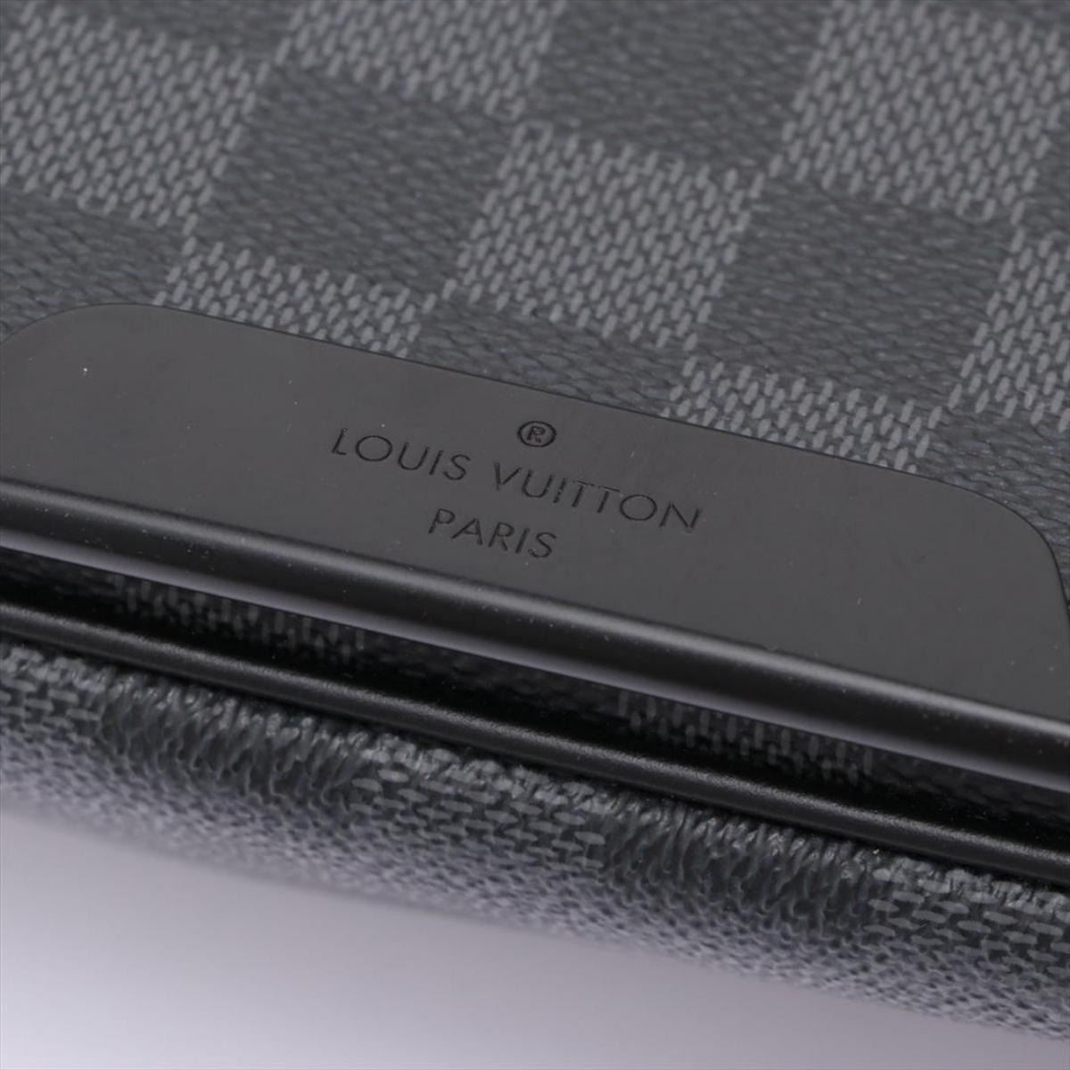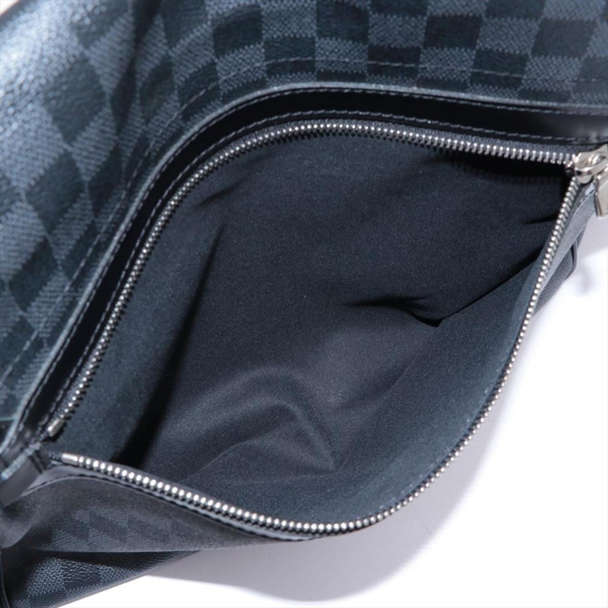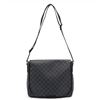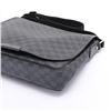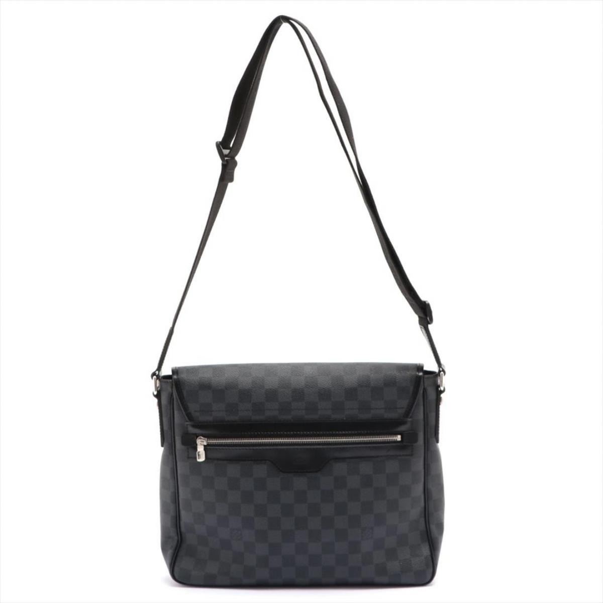 Black and charcoal Damier Graphite coated canvas Louis Vuitton Daniel MM with silver-tone hardware, black leather trim, adjustable flat shoulder strap, exterior zip pocket at back, slip pocket at flap underside, black woven lining, dual slip pockets at interior wall and magnetic closure at front flap. 13.5"x 3"x 11"xHandle Drop: 23"/34.2cmx7.6cmx27.9cmxHandle Drop:58.4cm