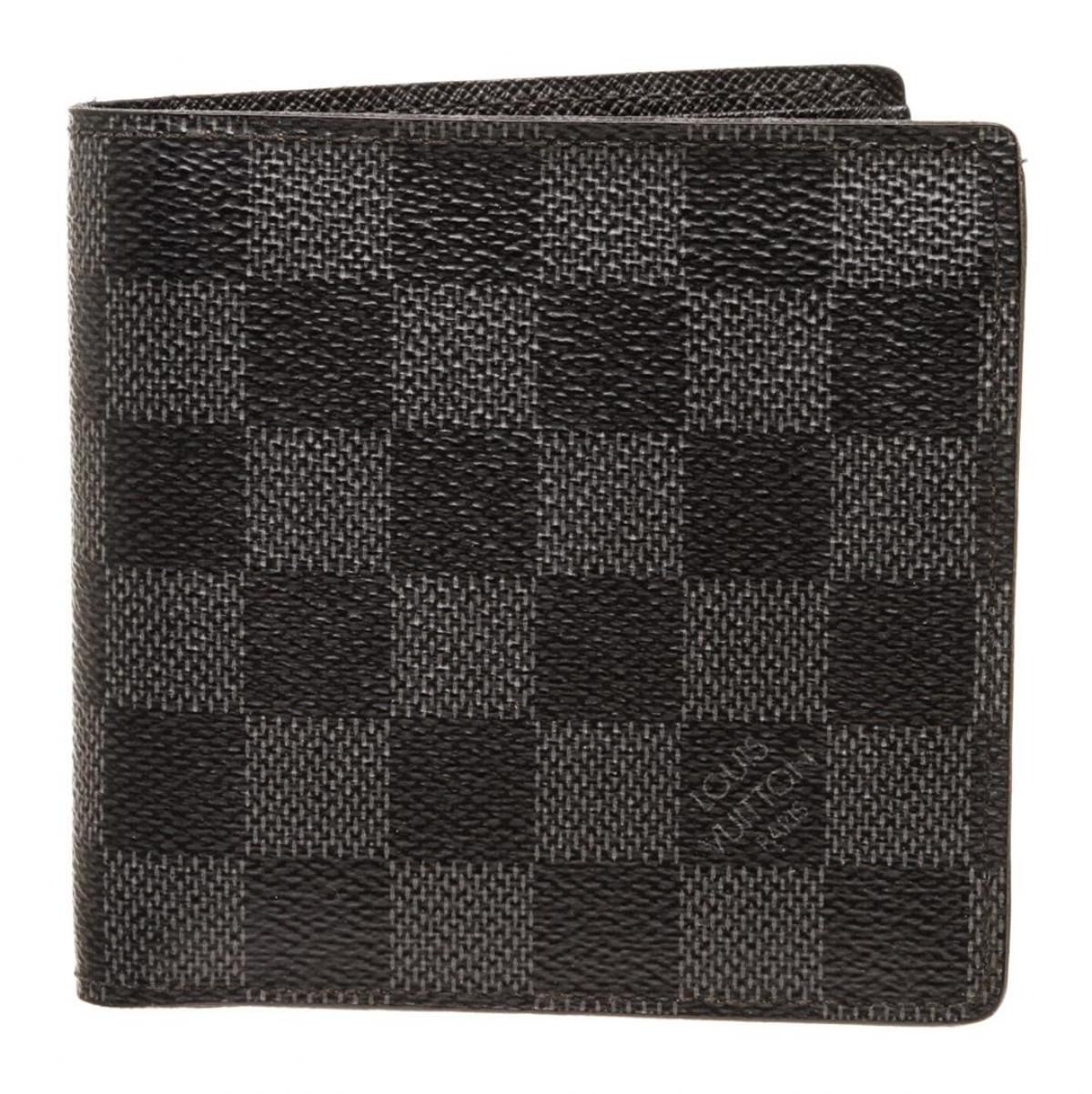 One Louis Vuitton Damier Graphite Canvas Leather Marco Bifold Wallet. Louis Vuitton signature gray and black checker damier graphite canvas on black leather men's Marco bifold wallet with leather interior, three card slots, coin pouch, two bill compartments, and one slide slot.