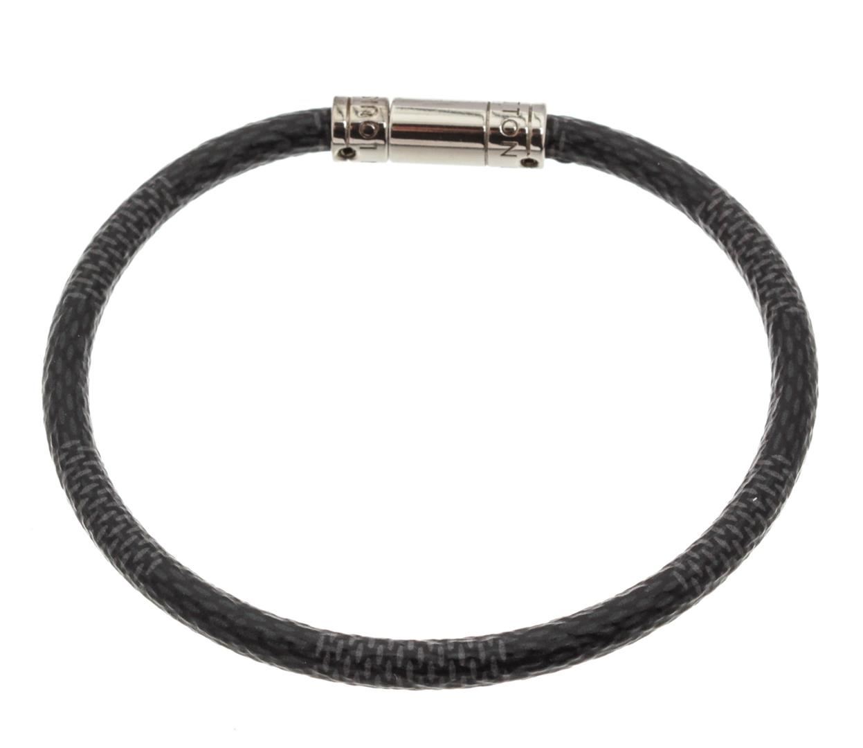 One Louis Vuitton Damier Graphite Coated Canvas Keep It Bracelet. Louis Vuitton gray Damier Graphite coated canvas Keep It bracelet with silver-tone hardware. MKX