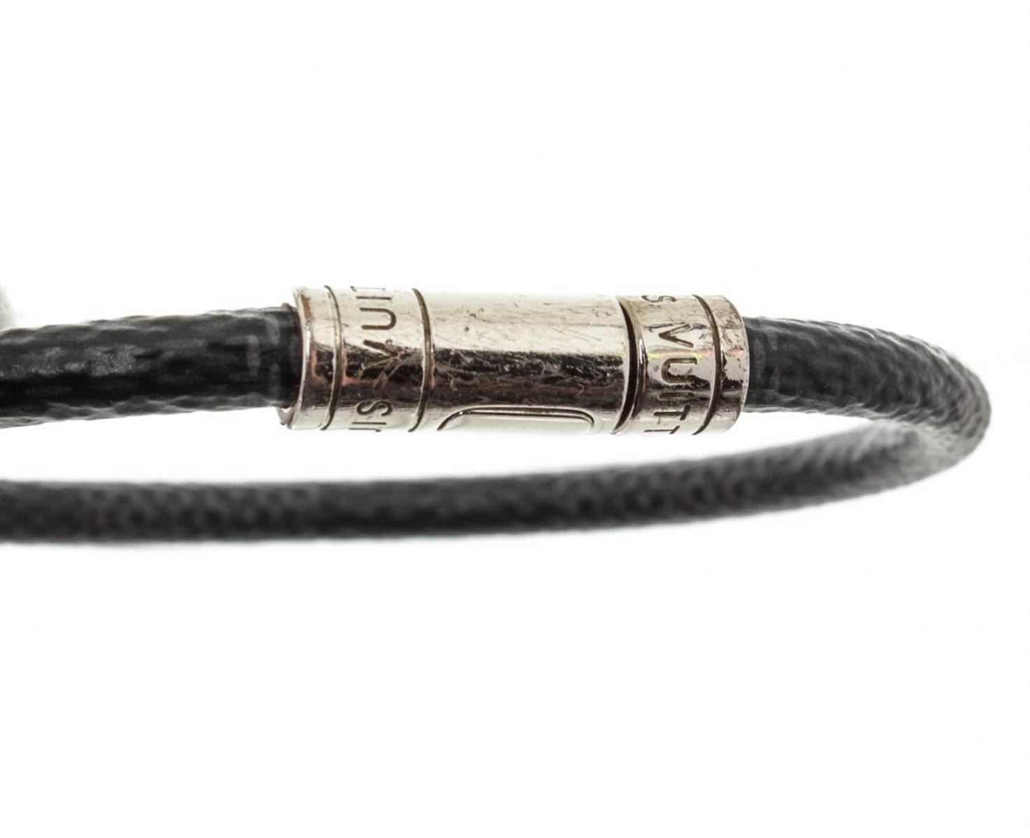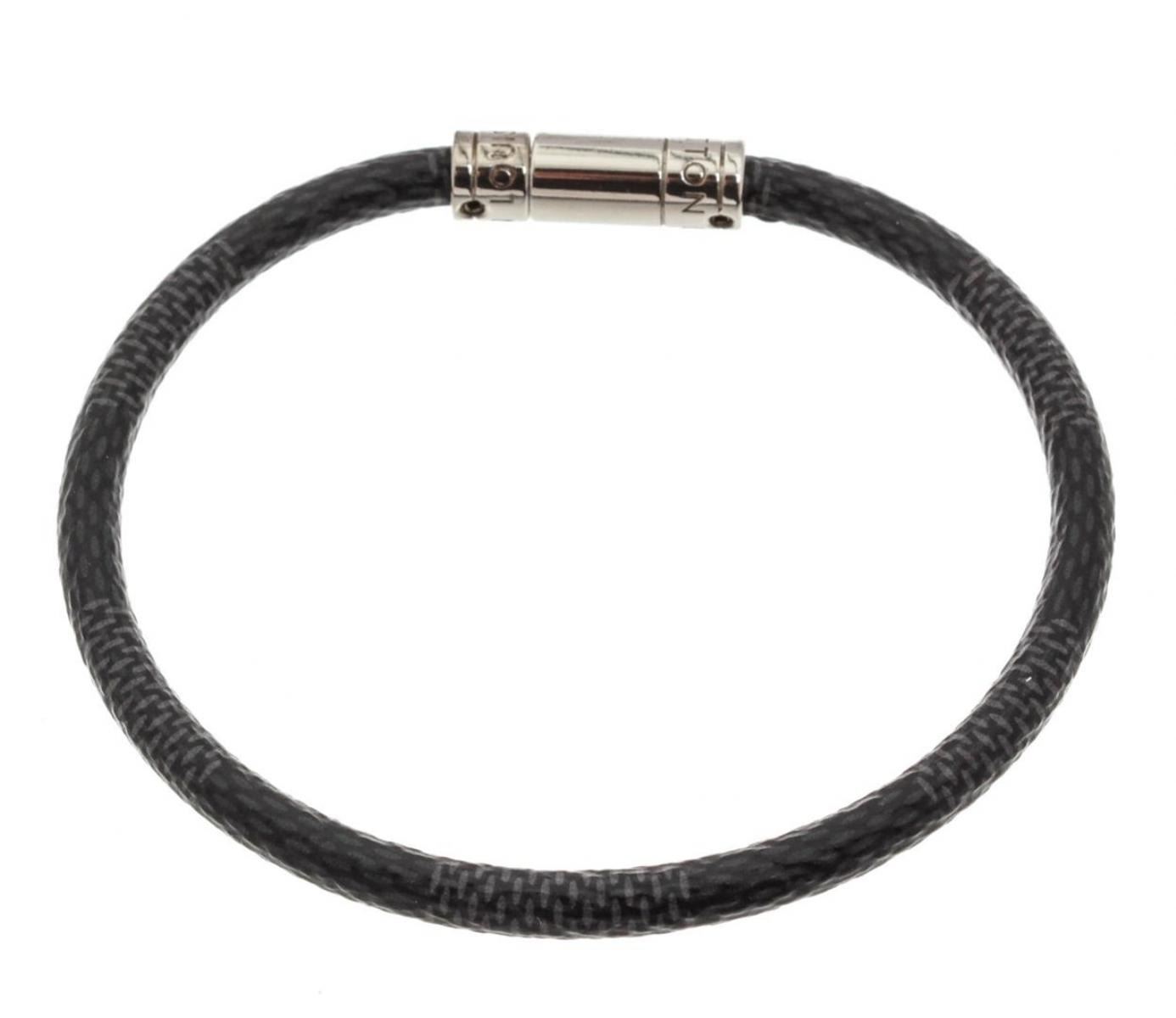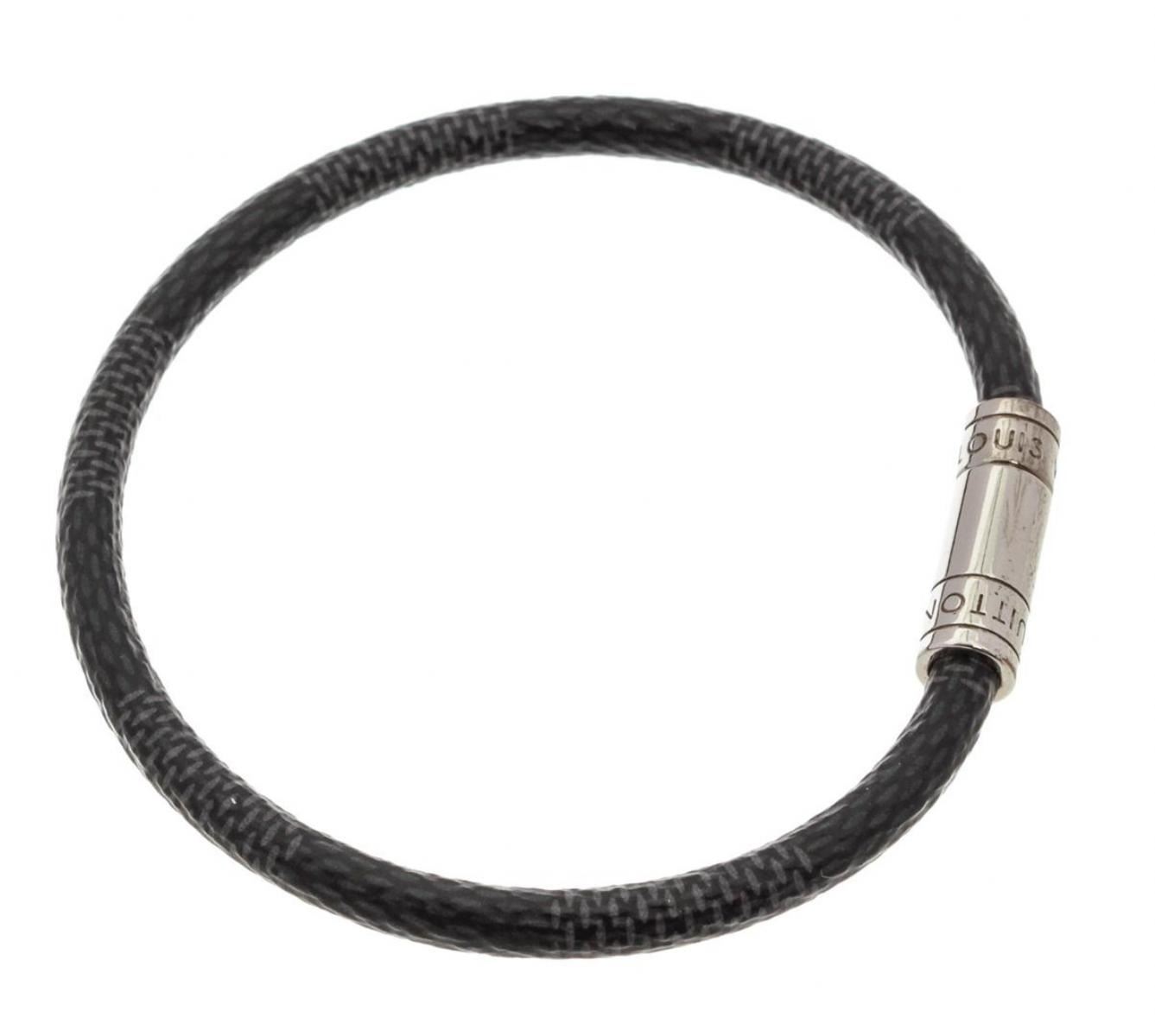 Louis Vuitton gray Damier Graphite coated canvas Keep It bracelet with silver-tone hardware.