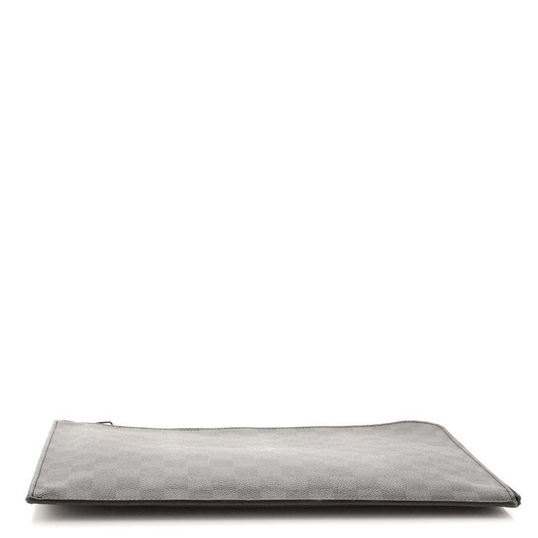 Louis Vuitton Damier Graphite Zip Around Pochette Jour GM Pouch with Damier Graphite coated canvas, silver-tone hardware, cowhide-leather lining, interior slip pocket and L-zipper closure.