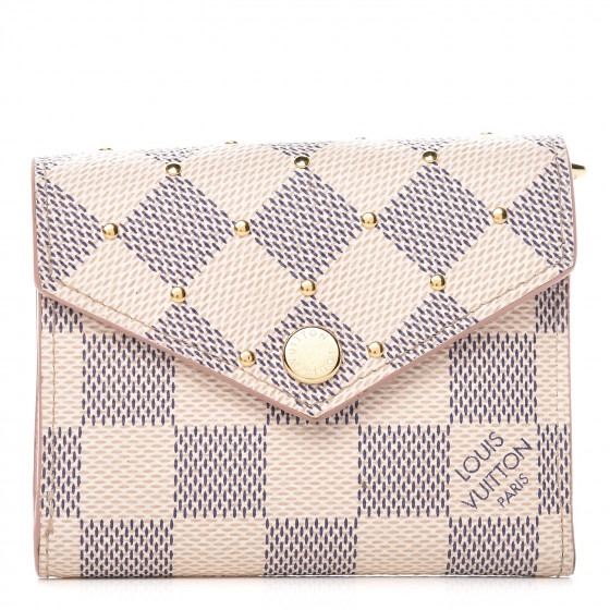 Rose / Ballerine stylish wallet is crafted of traditional Louis Vuitton damier on toile canvas. This wallet features an envelope style flap with gold-tone snap closure that opens to a pink cross-grain leather interior with card slots, bill compartment, and a zipper pocket.