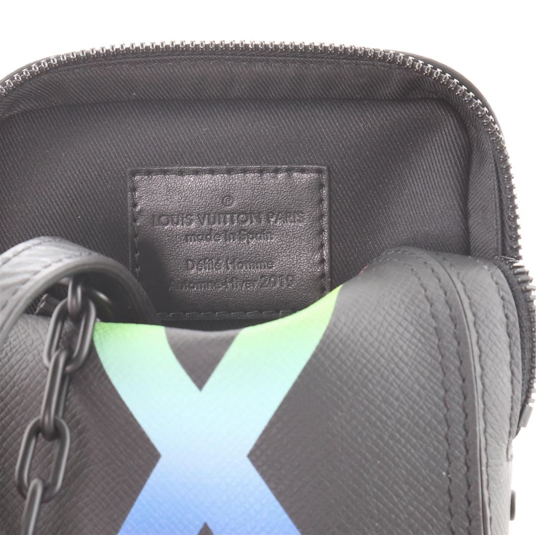 One Louis Vuitton Danube Messenger Bag Rainbow Taiga Leather Black, Multicolor, Print. Item is sold AS-IS. All available information is listed in the description and shown in the photo. Louis Vuitton Danube Messenger Bag Rainbow Taiga Leather Black Rainbow Taiga Leather Condition Details: Minor scuffs on strap, scratches on hardware. Height 6.5", Width 4.5", Depth 2", Strap Drop 20-24