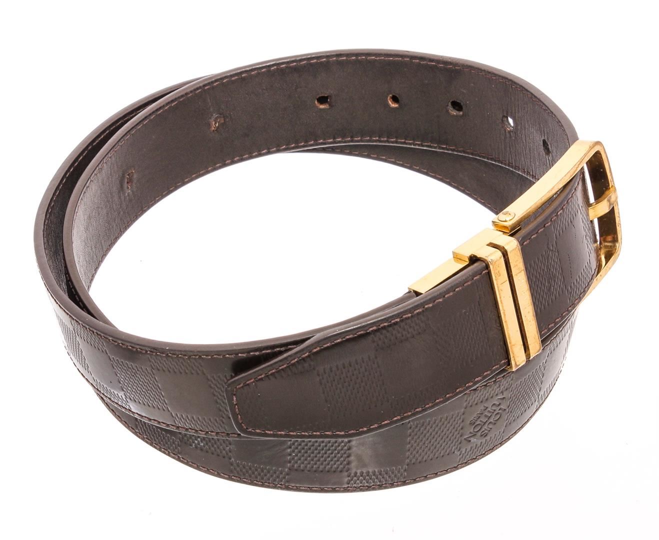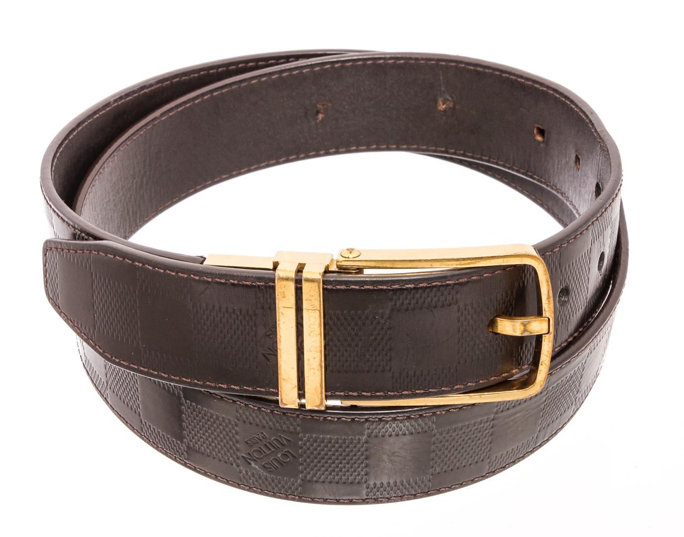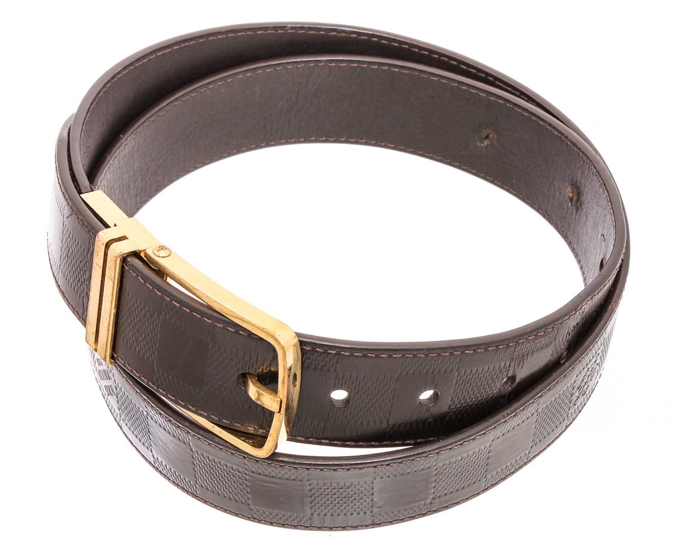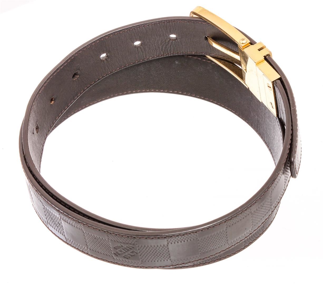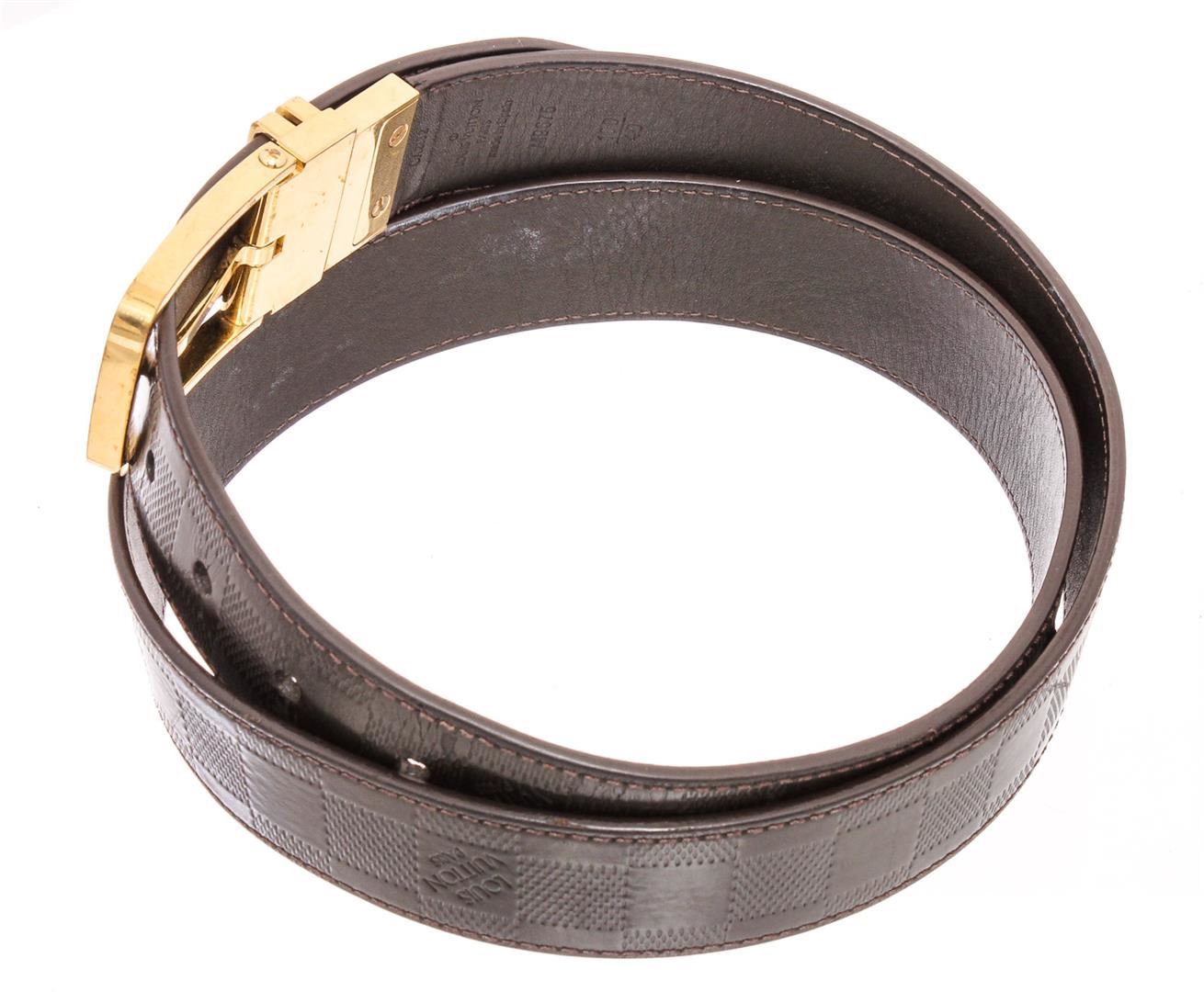 Dark brown Louis Vuitton Damier Infini reversible Boston 100cm leather belt with tonal stitching throughout, gold-tone logo hardware. Please note: there are two additional holes punched through the leather by a non professional. Designer Size 40/100