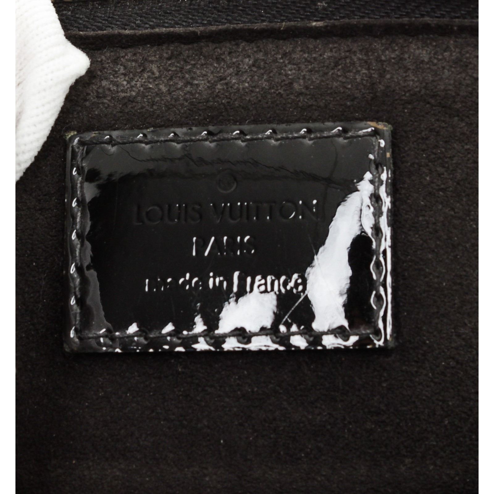 Black Electric Epi leather Louis Vuitton Alma BB with brass hardware, dual rolled top handles, detachable flap shoulder strap, protective feet at base, tonal Alcantara lining, single slit pocket at interior wall and two-way zip closure at top. Includes clochette, lock and keys.