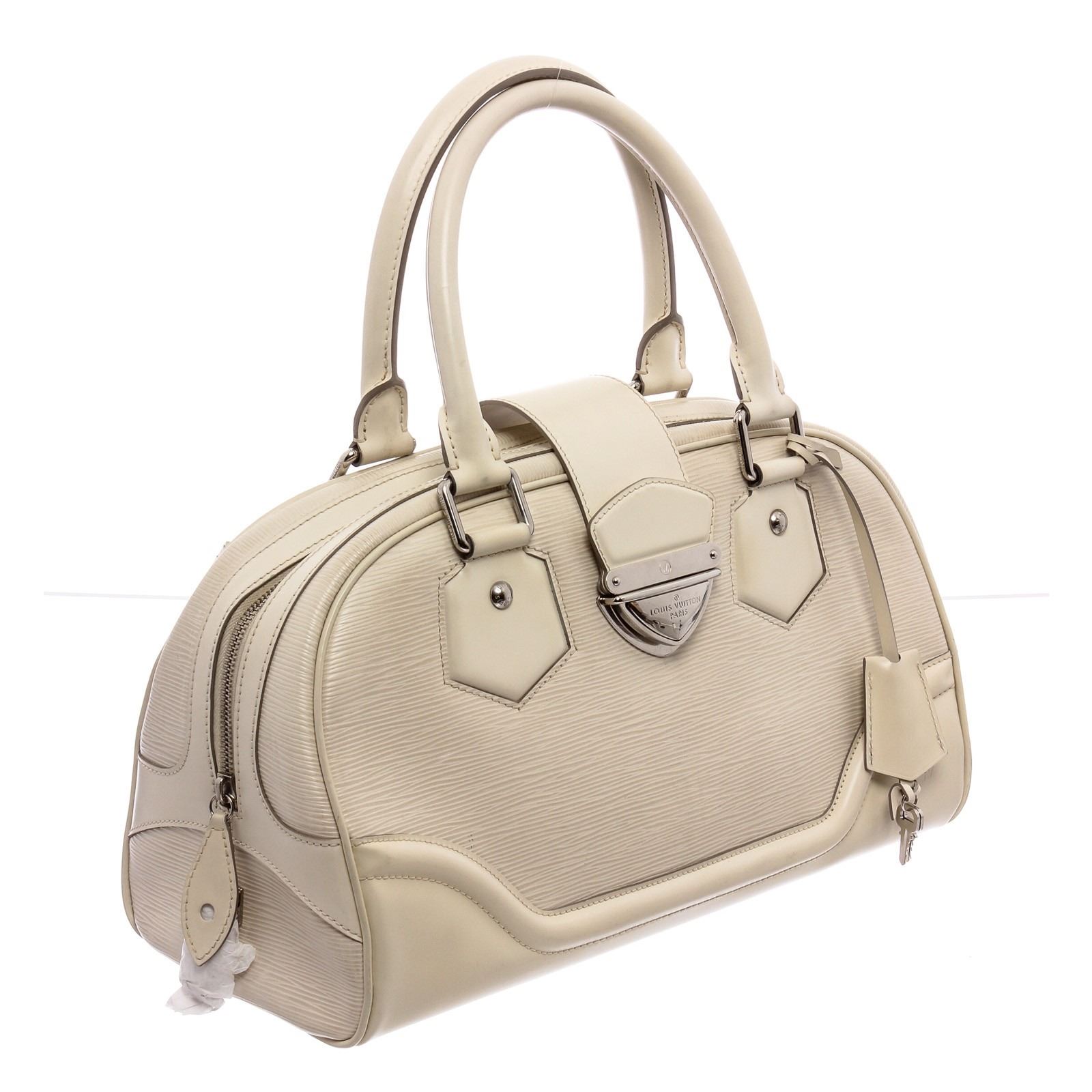 Style: Louis Vuitton White Epi Leather Montaigne Bowling GM Bag
