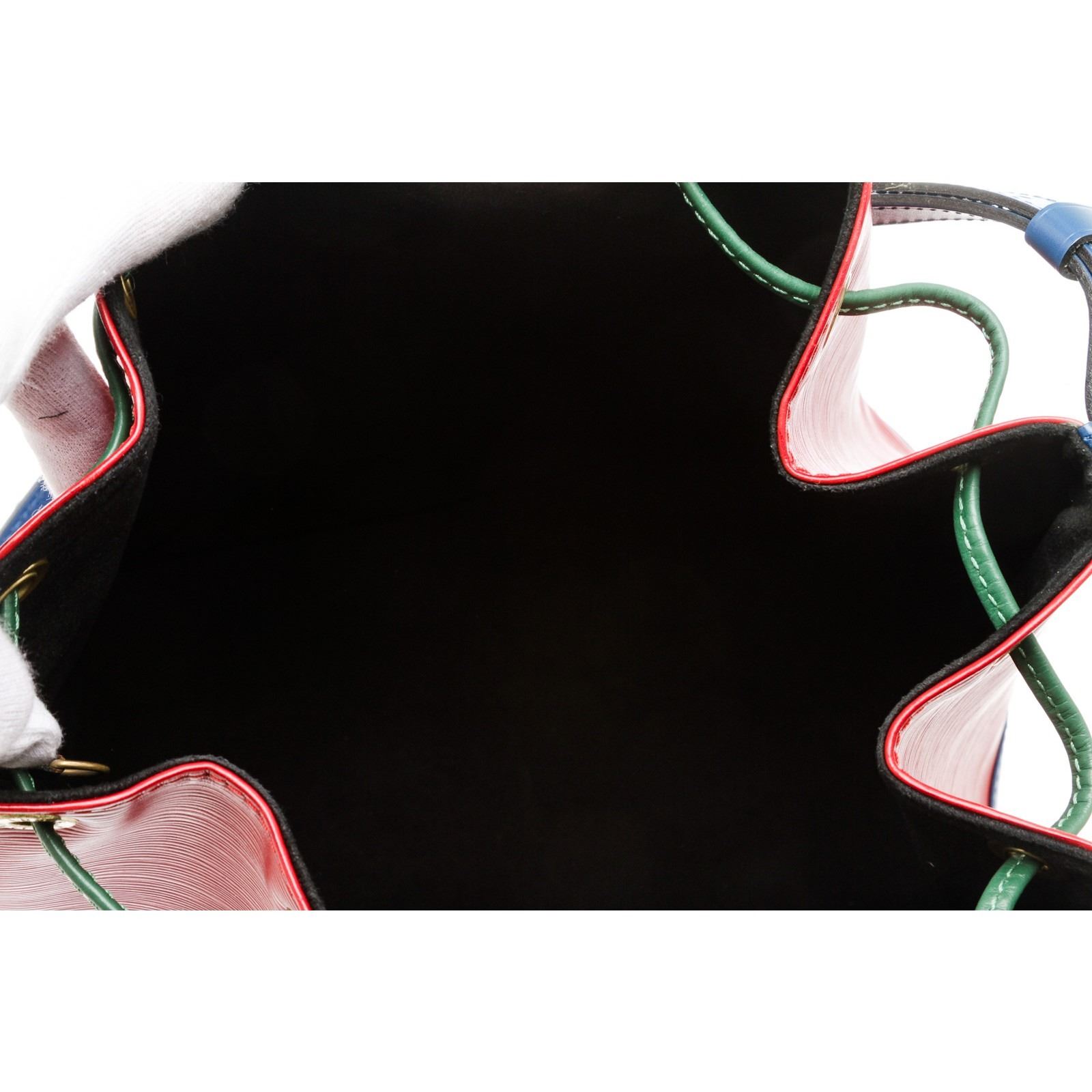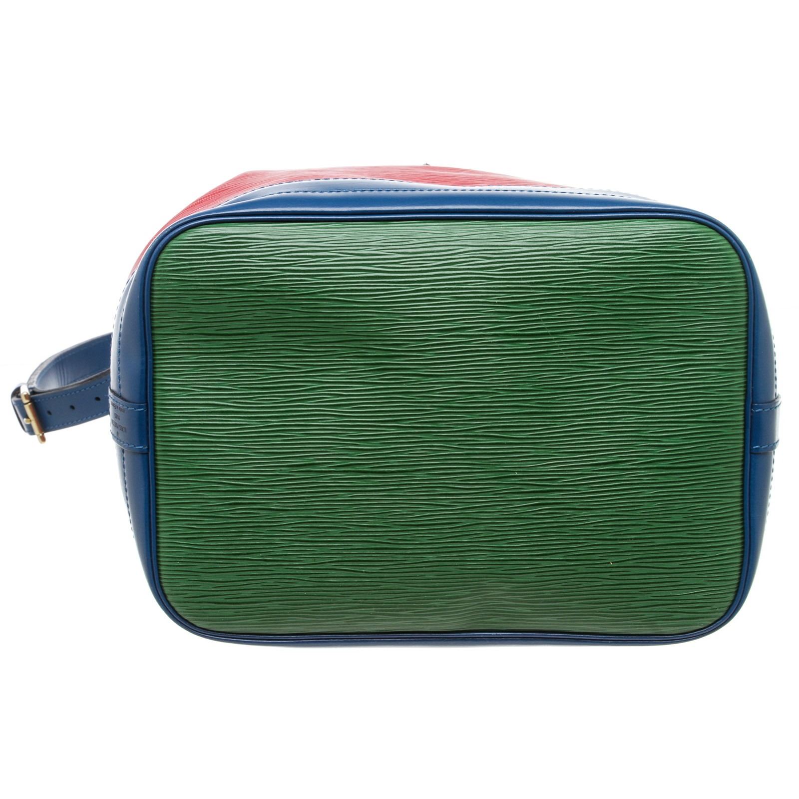 Description: Louis Vuitton Red Blue Epi Leather Noe GM Drawstring Shoulder Bag. Red, Blue and Green Epi leather Louis Vuitton Noe GM with brass hardware, single adjustable shoulder strap, tonal leather trim, embossed logo at exterior side, Alcantara lining and drawstring closure at top.