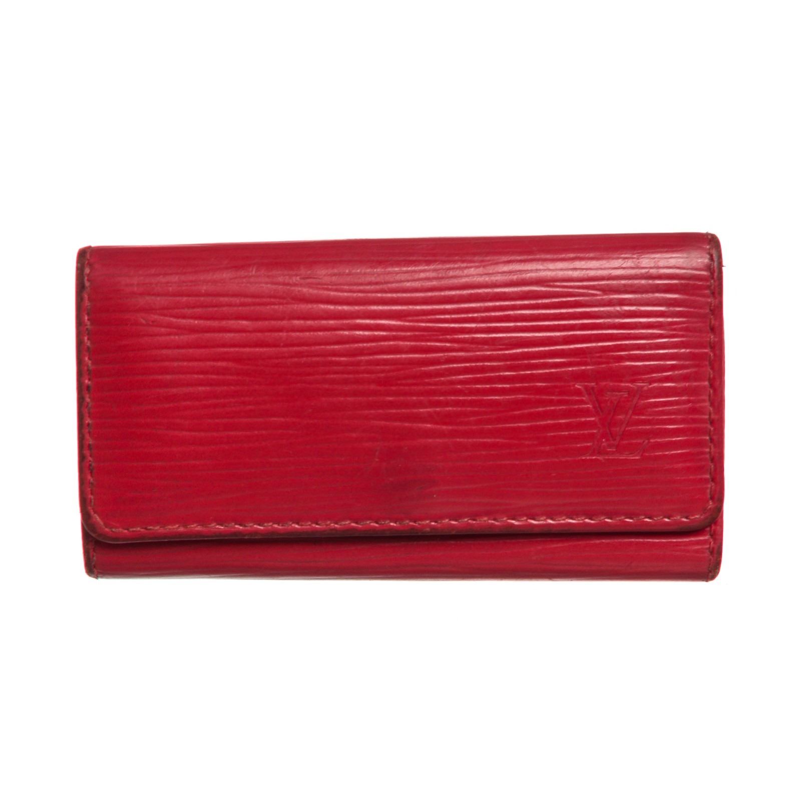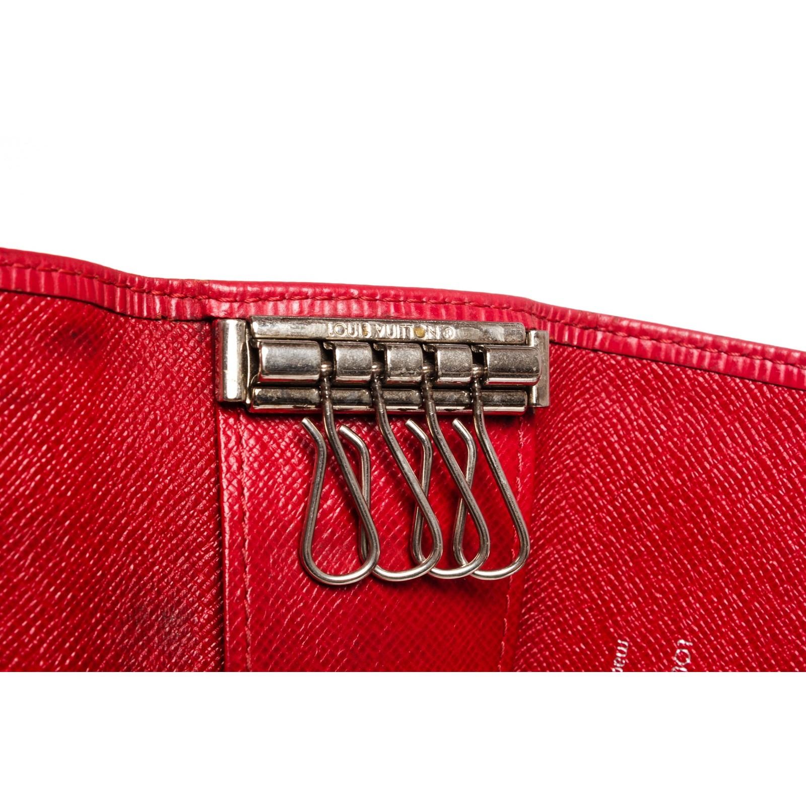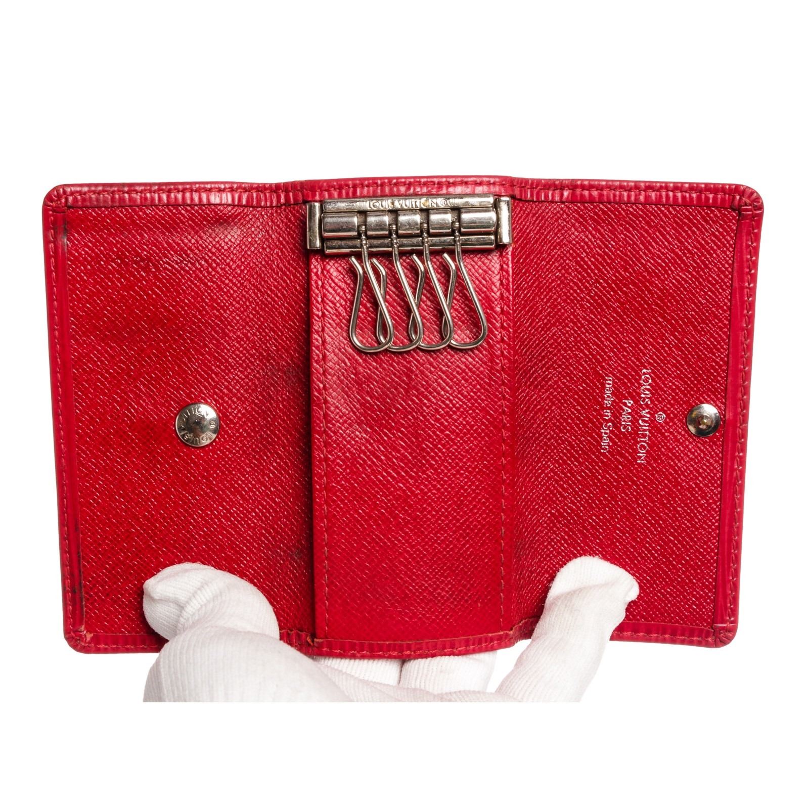 Red Epi leather Louis Vuitton key holder with gold-tone hardware, debossed logo at front, tonal leather interior, four key clasps and snap closure at front flap. .