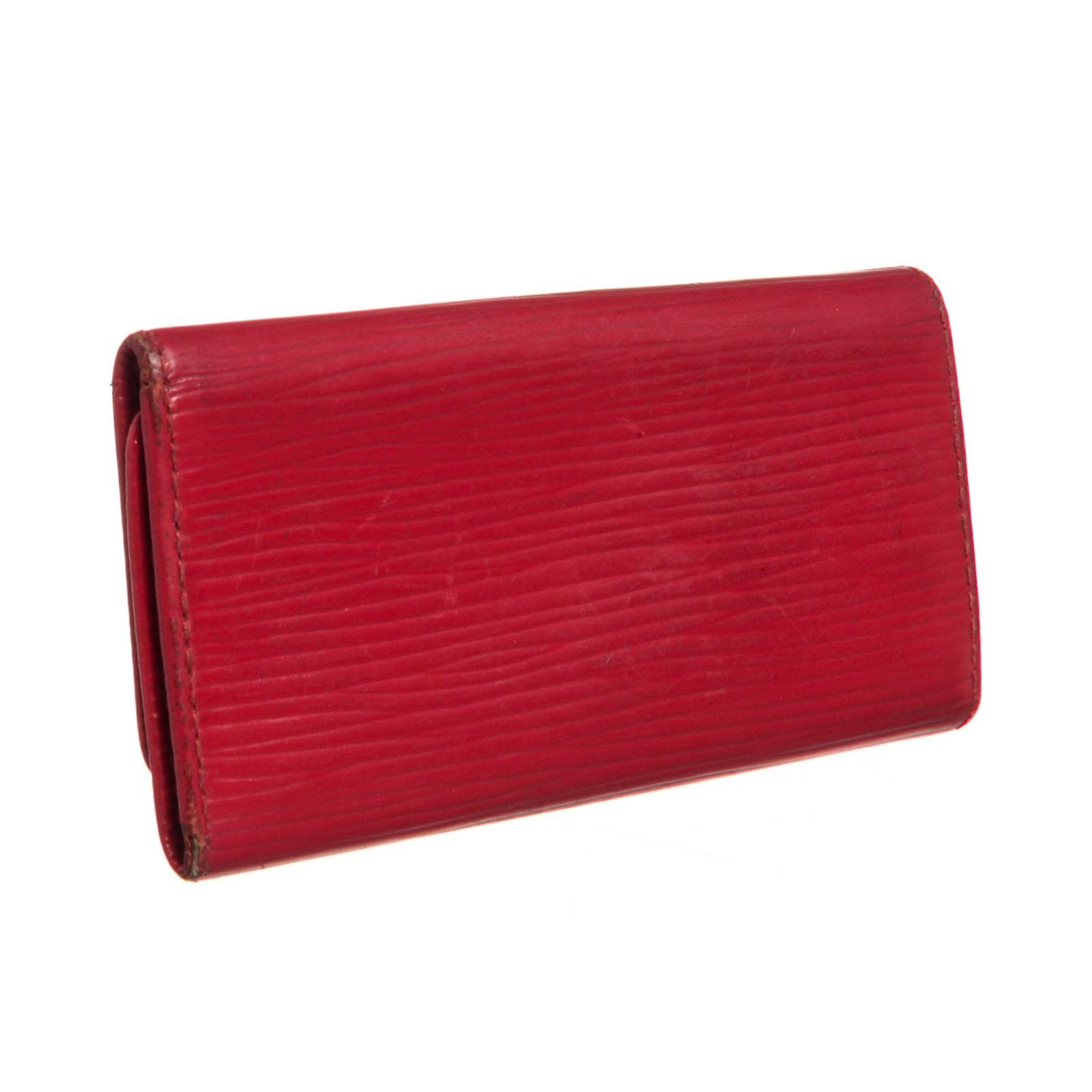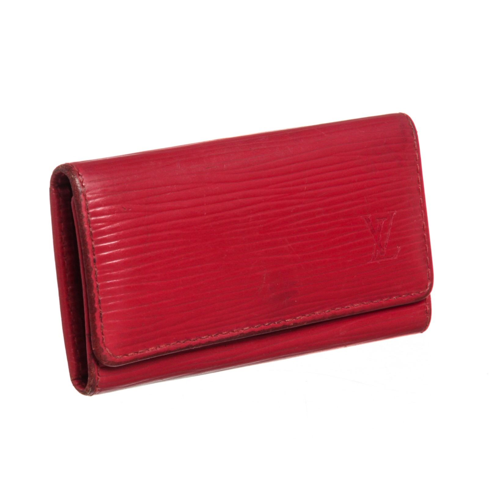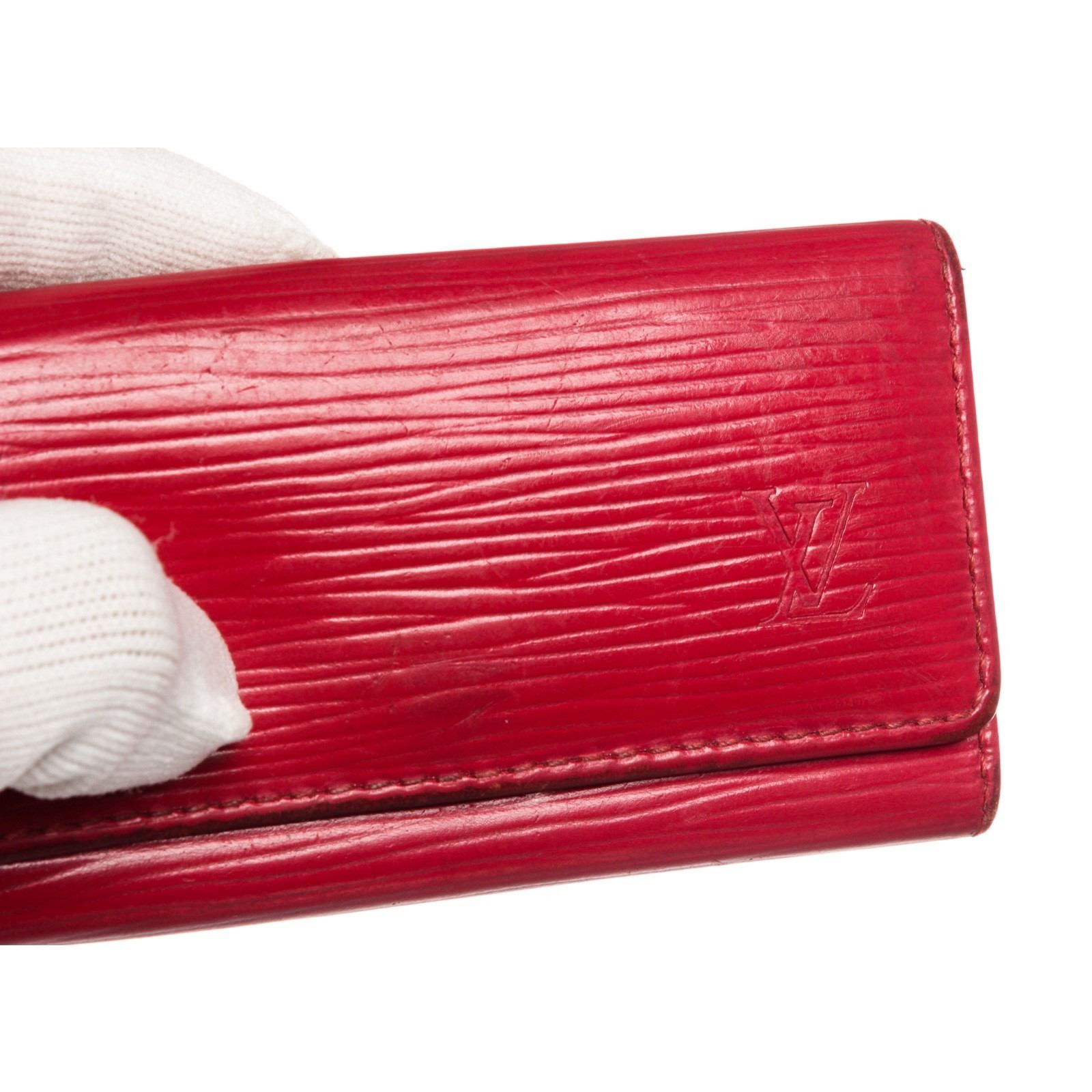 Red Epi leather Louis Vuitton key holder with gold-tone hardware, debossed logo at front, tonal leather interior, four key clasps and snap closure at front flap. .
