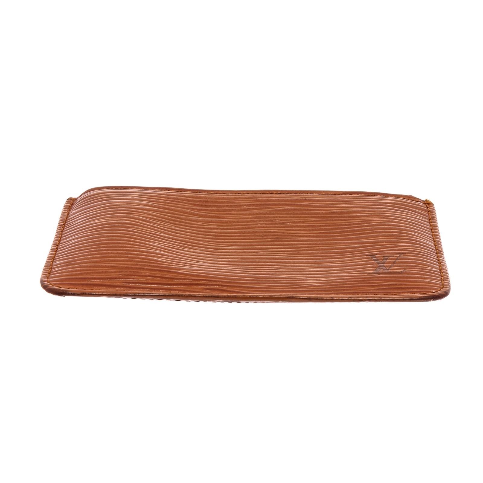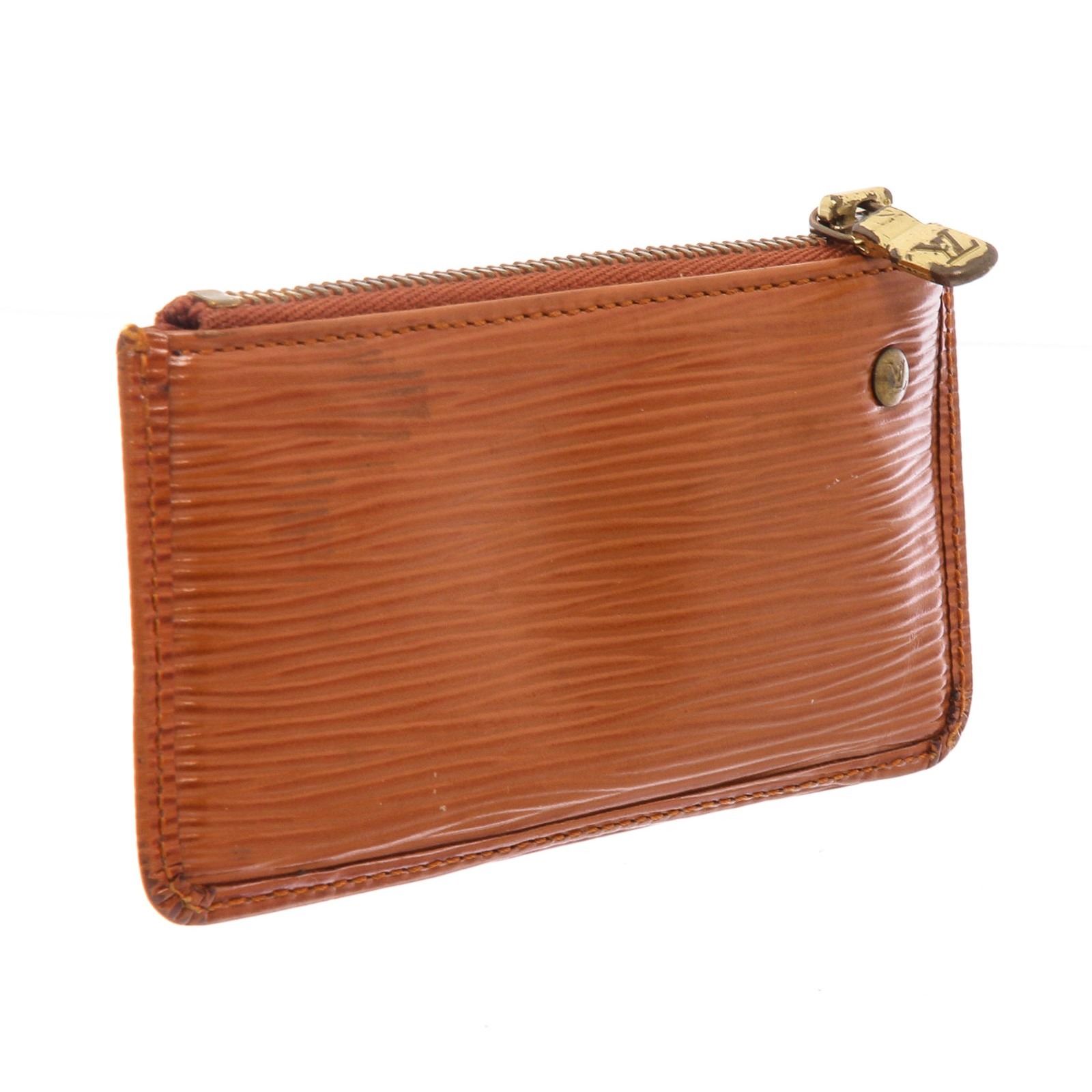 Brown Epi leather Louis Vuitton Pochette Cles key pouch with tonal leather lining and gold-tone hardware.