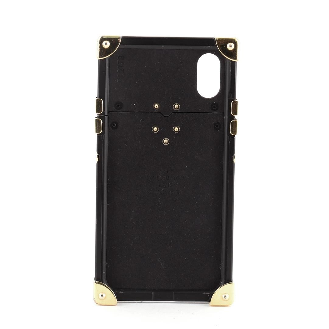 One Louis Vuitton Eye Trunk with Strap for iPhone X Reverse Monogram Canvas Brown. Item is sold AS-IS. All available information is listed in the description and shown in the photo. Louis Vuitton Eye Trunk with Strap for iPhone X Reverse Monogram Canvas Reverse Monogram Condition Details: Moderate scratches on exterior edges and hardware, stains on strap. Height 6", Width 3", Depth 0.5", Strap Drop None