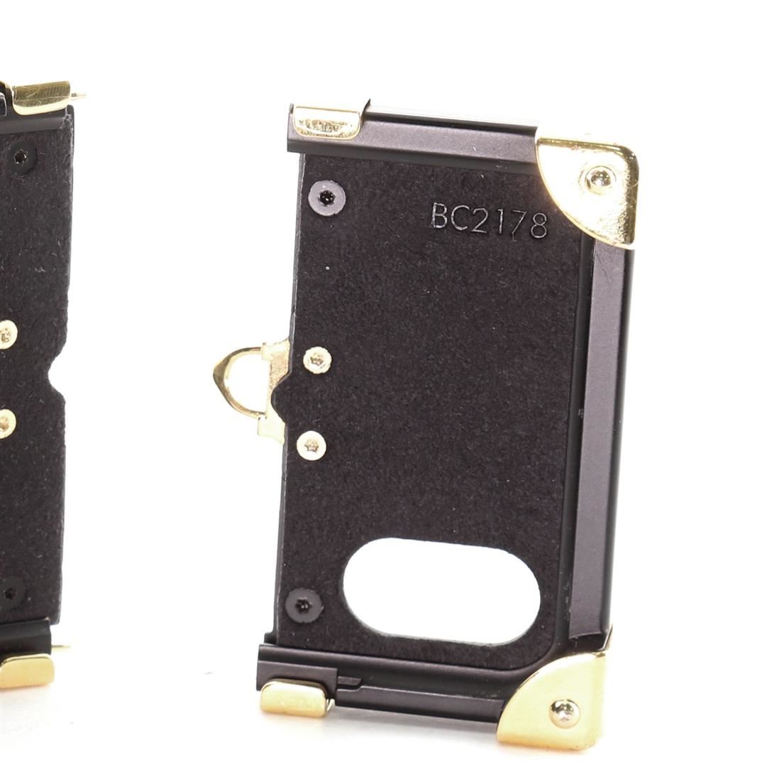 One Louis Vuitton Eye Trunk with Strap for iPhone X Reverse Monogram Canvas Brown. Item is sold AS-IS. All available information is listed in the description and shown in the photo. Louis Vuitton Eye Trunk with Strap for iPhone X Reverse Monogram Canvas Reverse Monogram Condition Details: Moderate scratches on exterior edges and hardware, stains on strap. Height 6", Width 3", Depth 0.5", Strap Drop None
