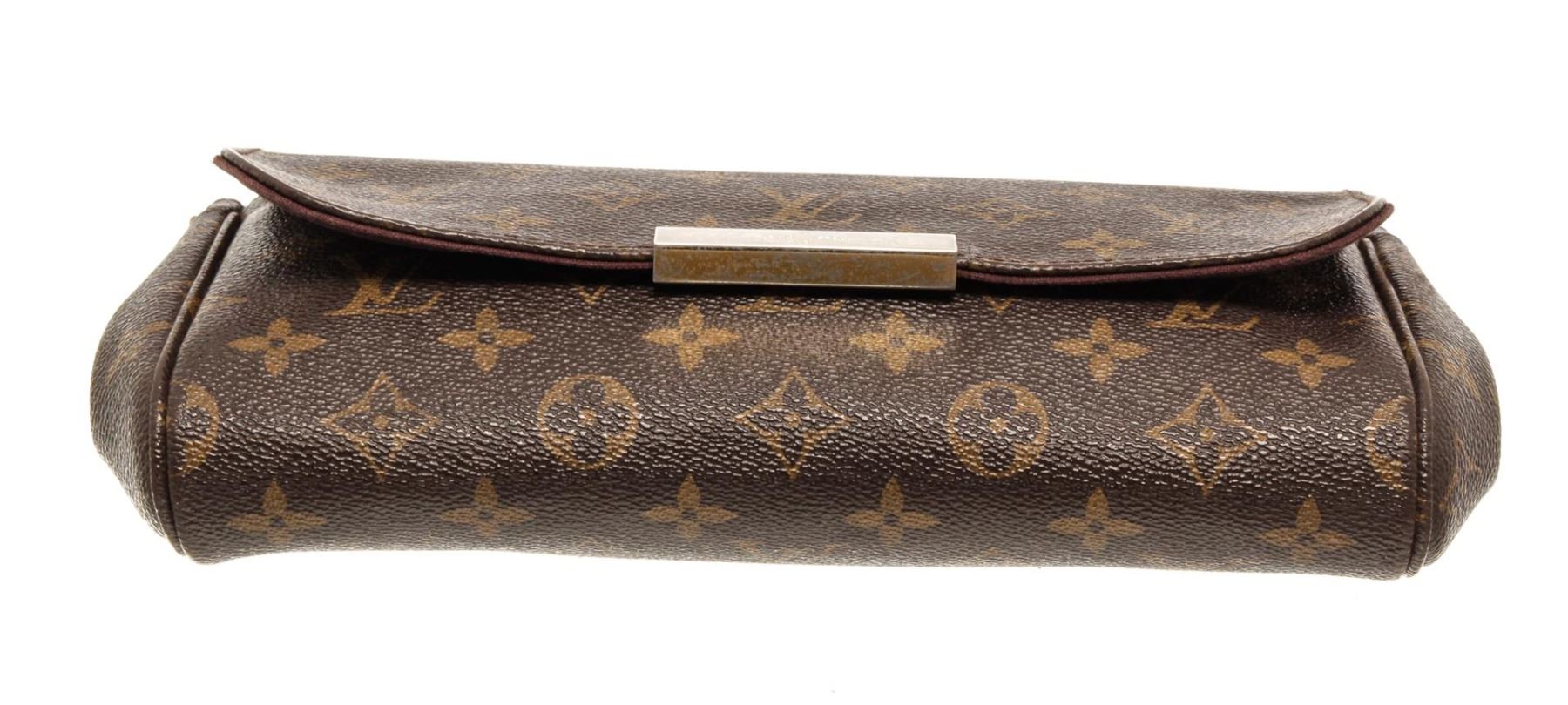 One Louis Vuitton Favorite Brown Monogram Canvas MM Crossbody Bag. Item is sold AS-IS. All available information is listed in the description and shown in the photo. Louis Vuitton Favorite PM Brown Monogram Canvas Cross Body Bag with material Monogram Canvas, gold-tone hardware, interior slip pocket, burgundy canvas lining, Removeable chain strap and long leather shoulder strap and flap closure. .