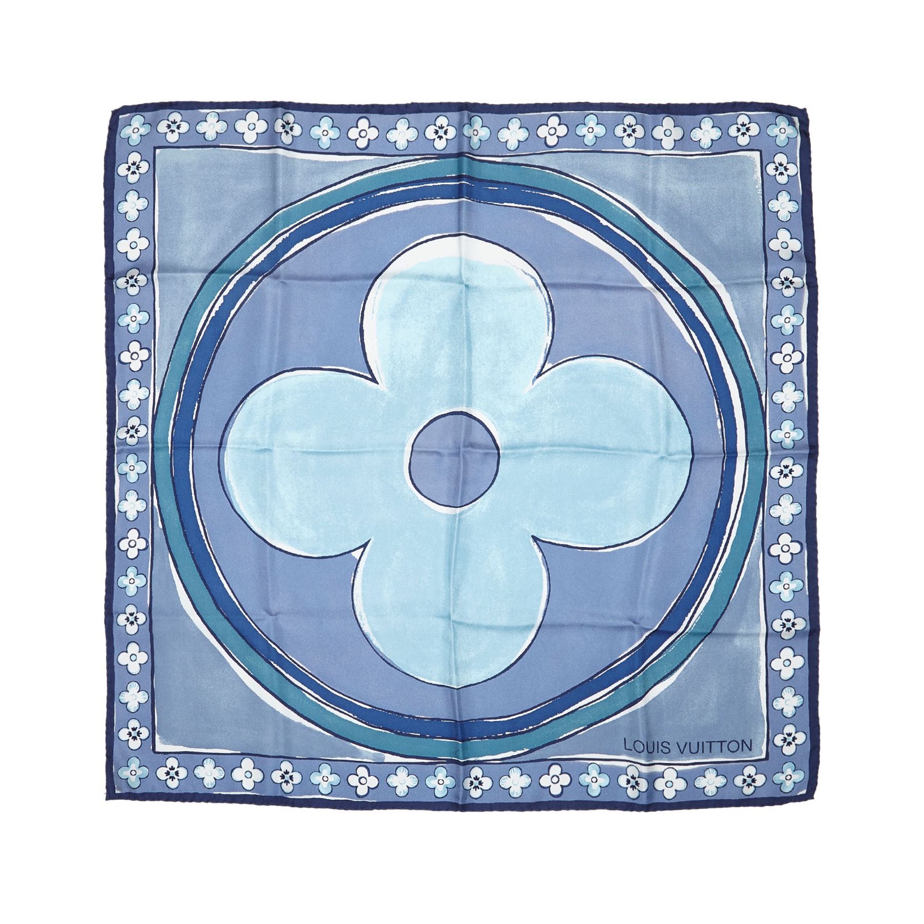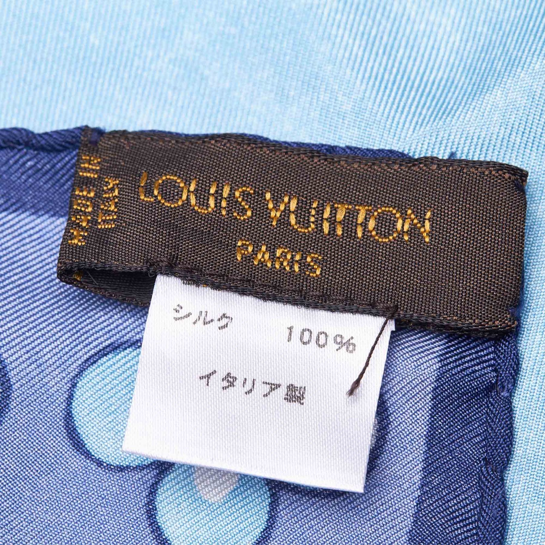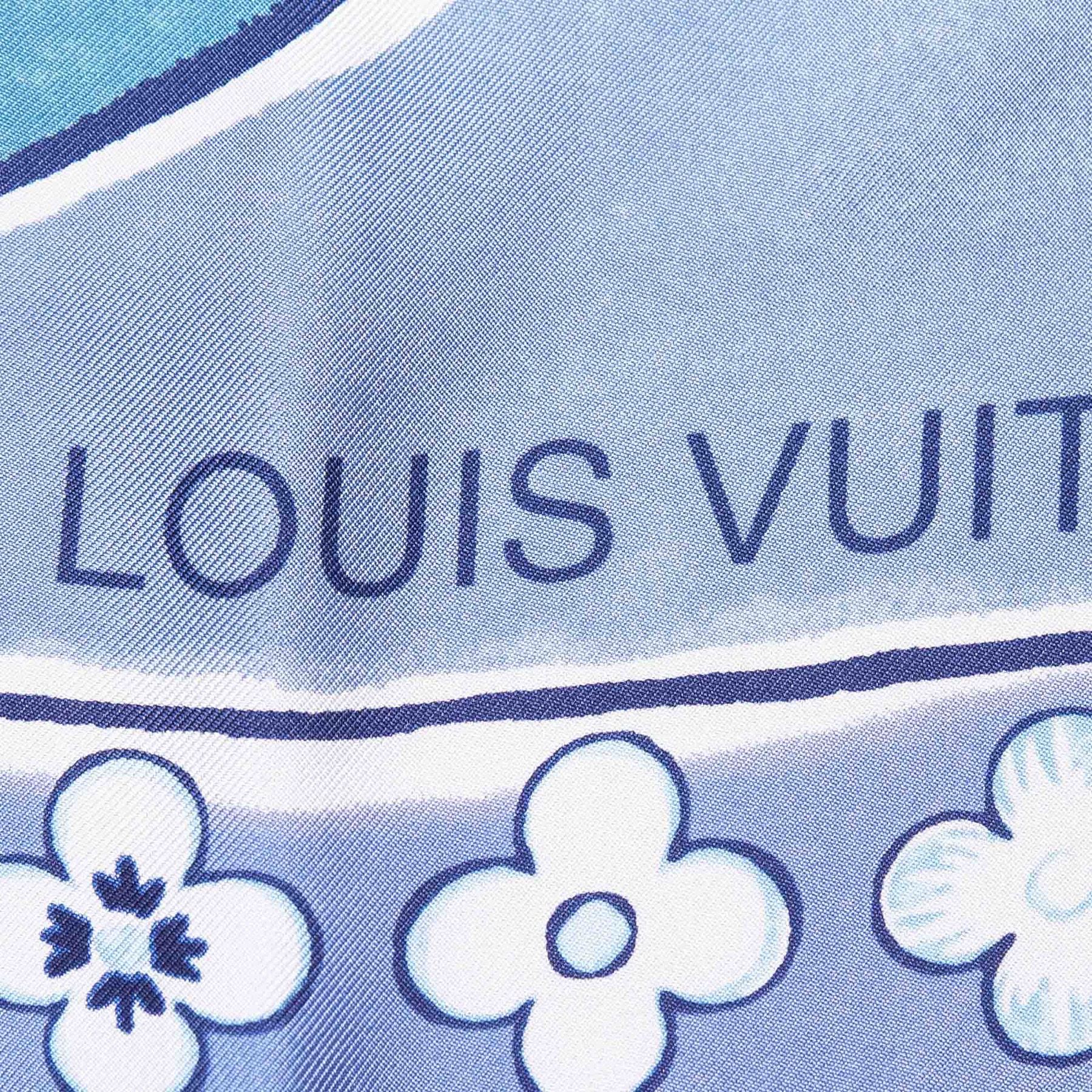 This scarf features a floral print on 100% silk. Fabric x Silk Blue Size: 67 x 65.5 x 0 Card: NO. Louis Vuitton pieces do not come with an authenticity card—please refer to the production date code within the bag for its age and as an authenticity reference. Made in: France