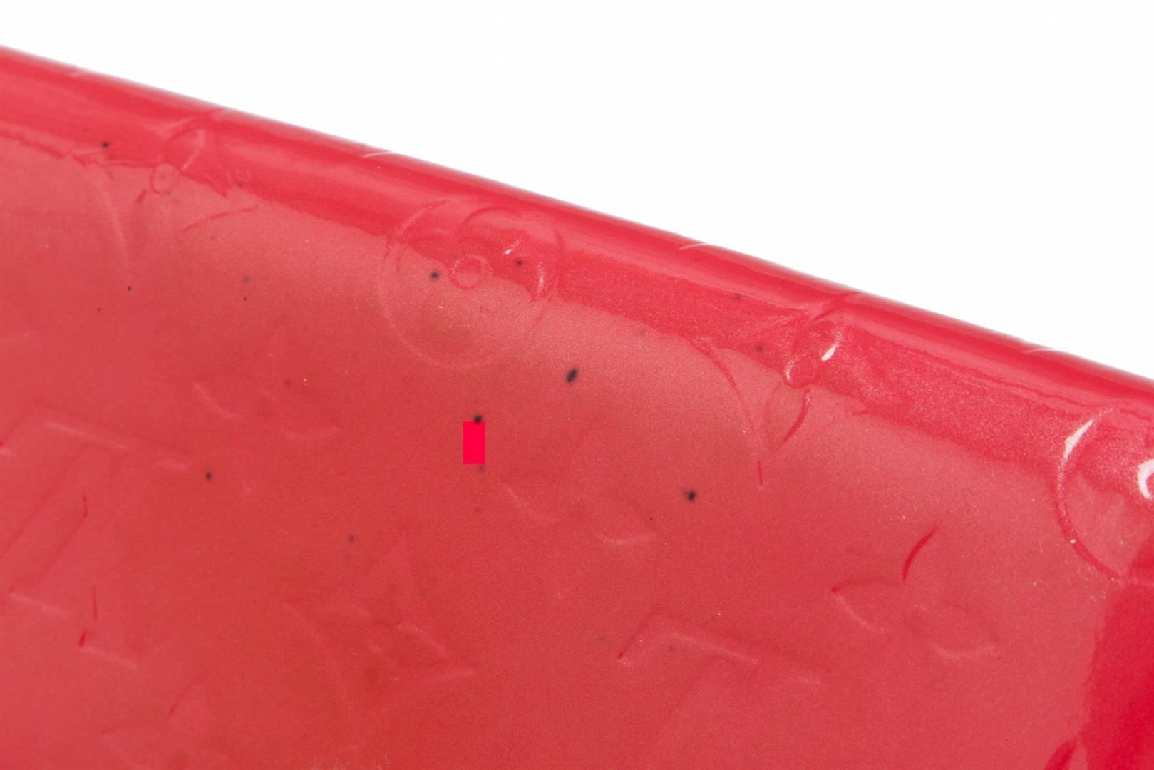 Louis Vuitton Framboise Vernis Monogram Sarah Wallet. Please see photos and description for all available information! Monogram Vernis leather Louis Vuitton Sarah wallet with brass hardware, dual slip pockets at flap underside, tonal leather lining, dual