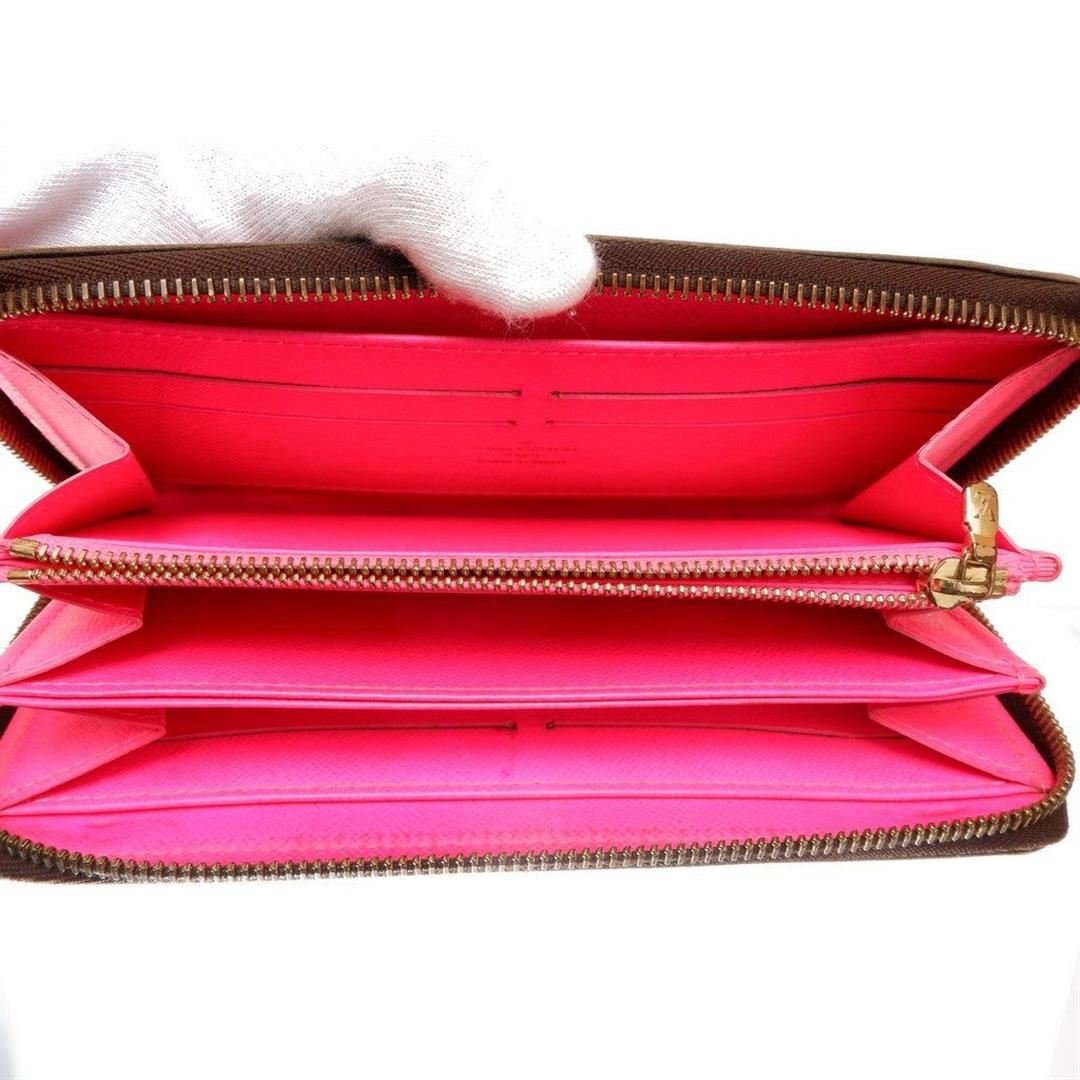 Fuchsia fluorescent graffiti monogram canvas Louis Vuitton zippy wallet with the iconic pattern overlaid, single wrap-around zip closure, pink cross-grained leather interior lining, features eight card slots, one zip coin pocket, three gusseted pockets, t