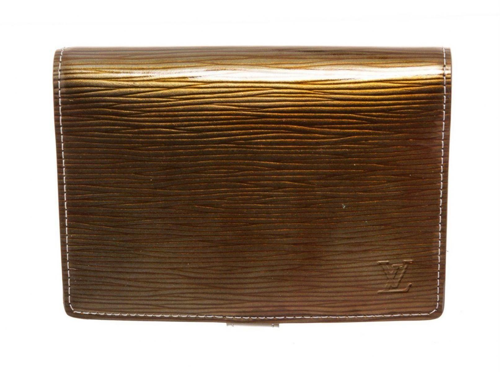 Louis Vuitton Gold Epi Leather Agenda PM Wallet. Louis Vuitton Gold Epi Leather Agenda PM Wallet with material epi leather, gold-tone hardware, trim tan vachetta leather, interior cardholder pockets and snap closure. MEASUREMENTS: Length 5.6 in / 14 cm