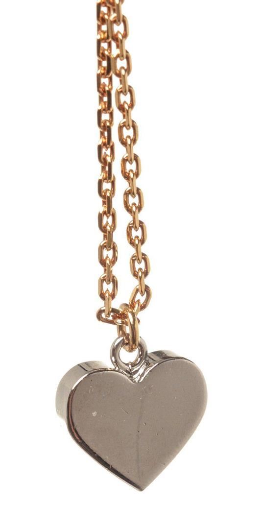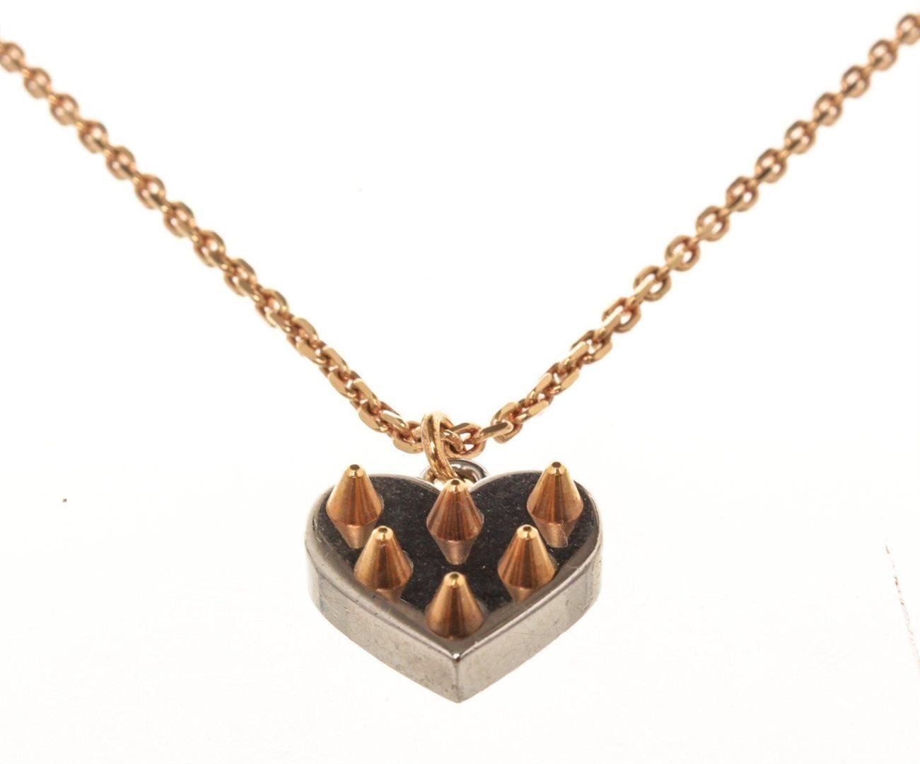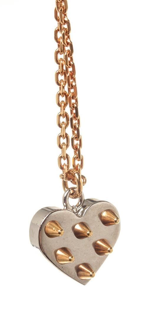 Louis Vuitton Gold Studded Heart Necklace with gold-tone hardware, trim tan vachetta leather and turn lock closure.