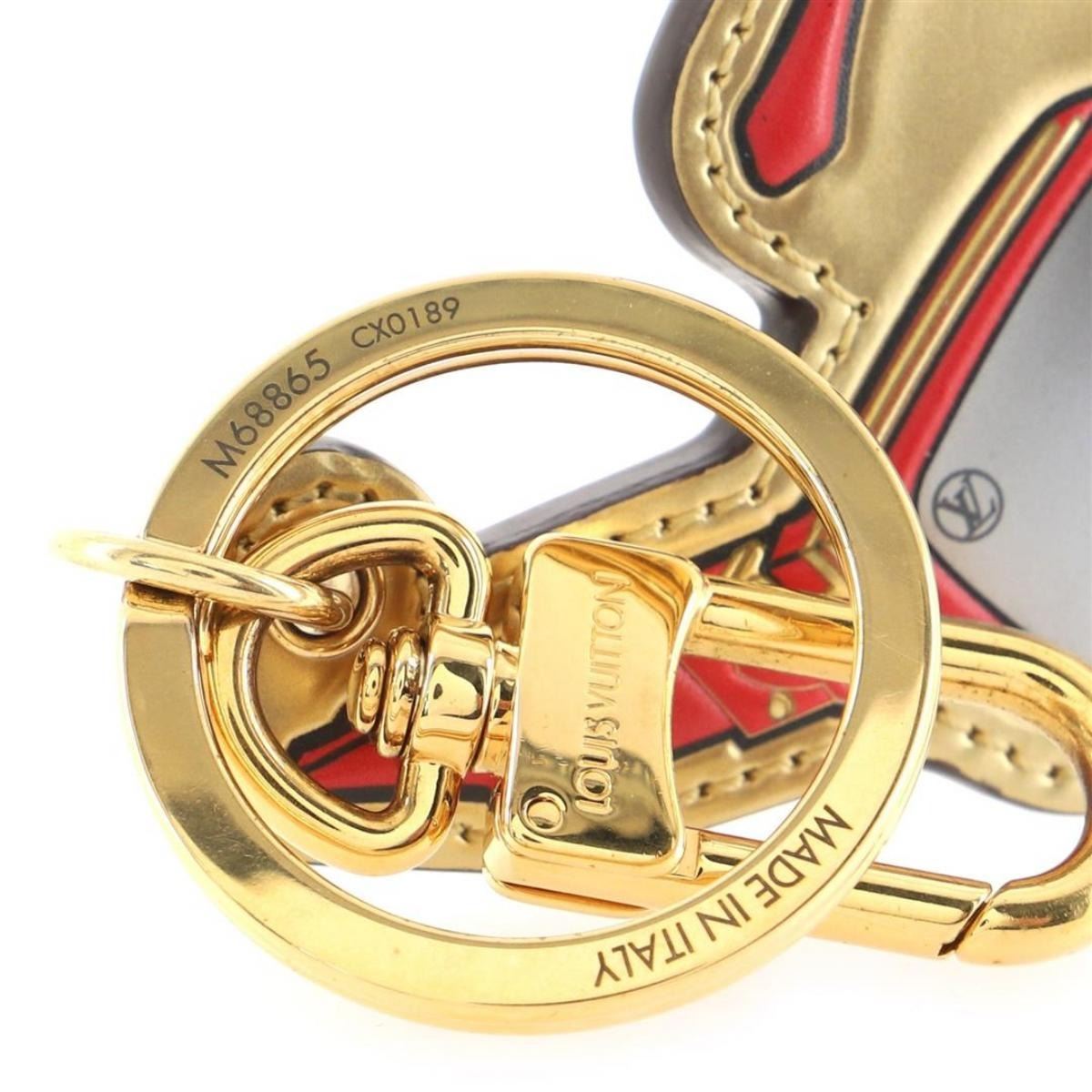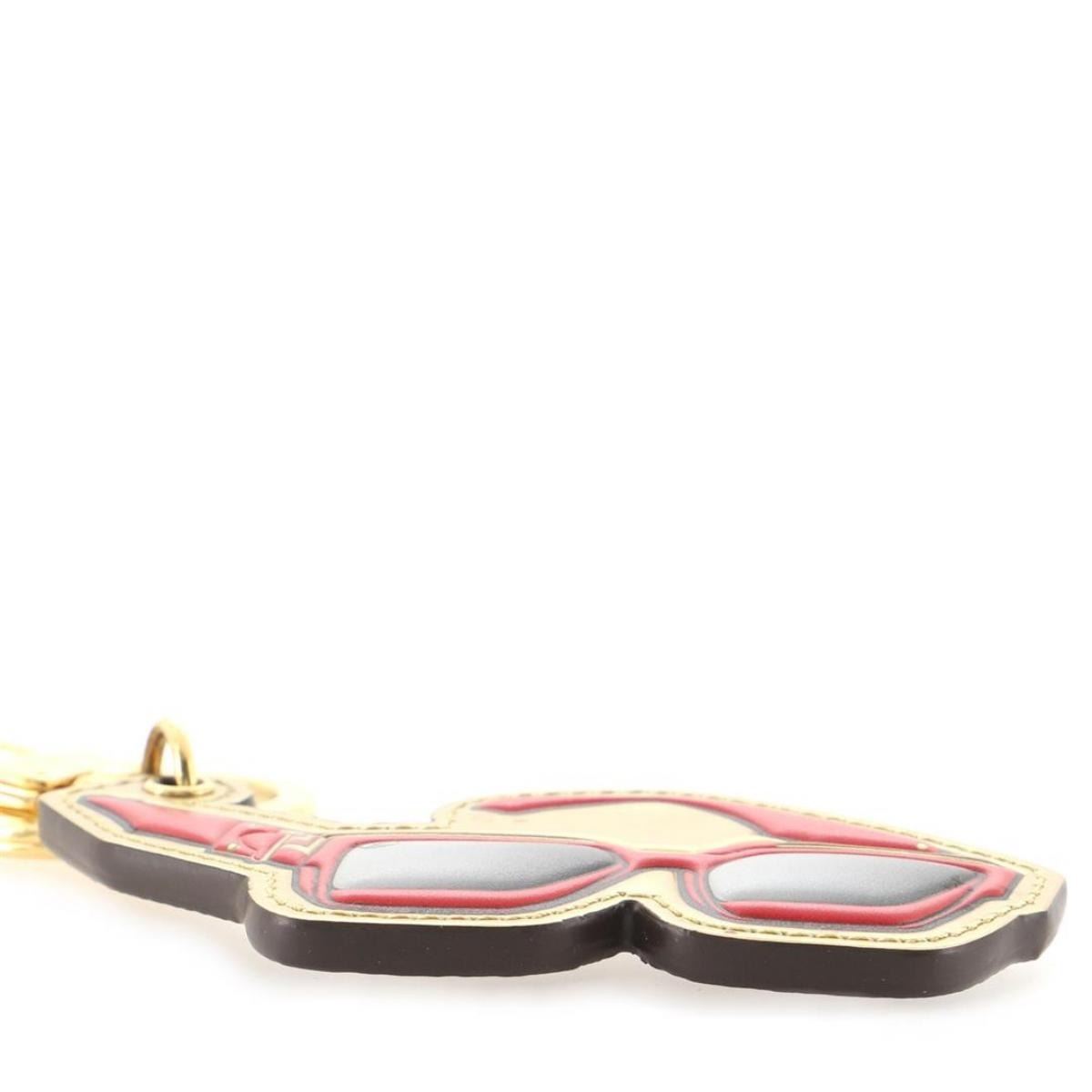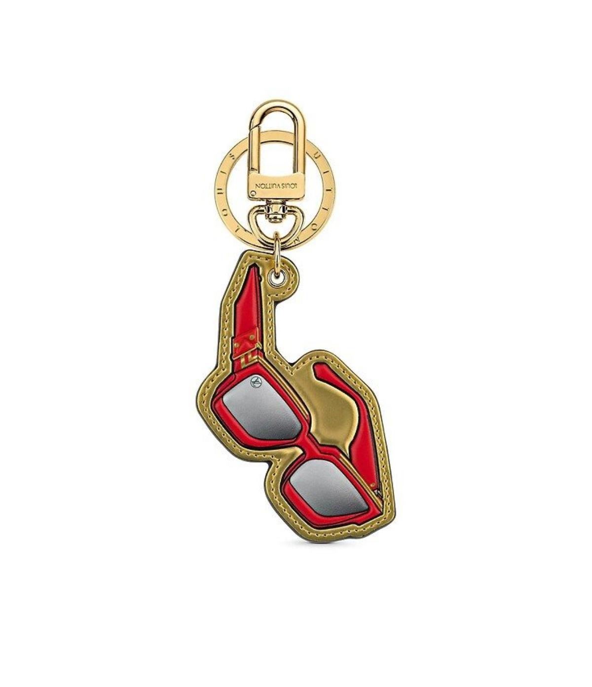 The 1.1 Millionaire Mini Icons bag charm and key holder by Virgil Abloh's design hearken back to Al Capone's old Chicago, with vintage Monogram sunglasses in embossed cowhide leather. This versatile piece is delicately engraved with the Louis Vuitton signature on the snap hook and attaches to a wallet or travel case, with gold-tone hardware.