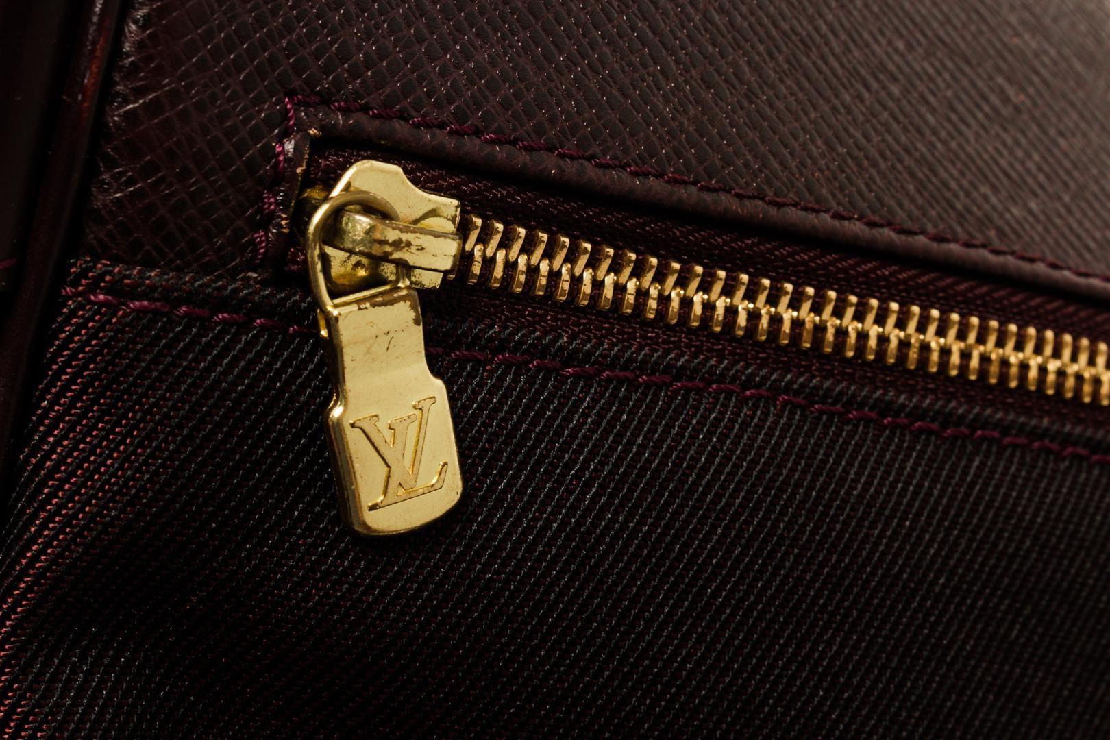 One Louis Vuitton Gray Taiga Leather Abbesses Messenger Bag. Item is sold AS-IS. All available information is listed in the description and shown in the photo. Louis Vuitton Gray Taiga Leather Abbesses messenger features gold-tone hardware, nylon adjustable shoulder strap, red canvas lining, three interior pockets, flap top with elastic loop closure.