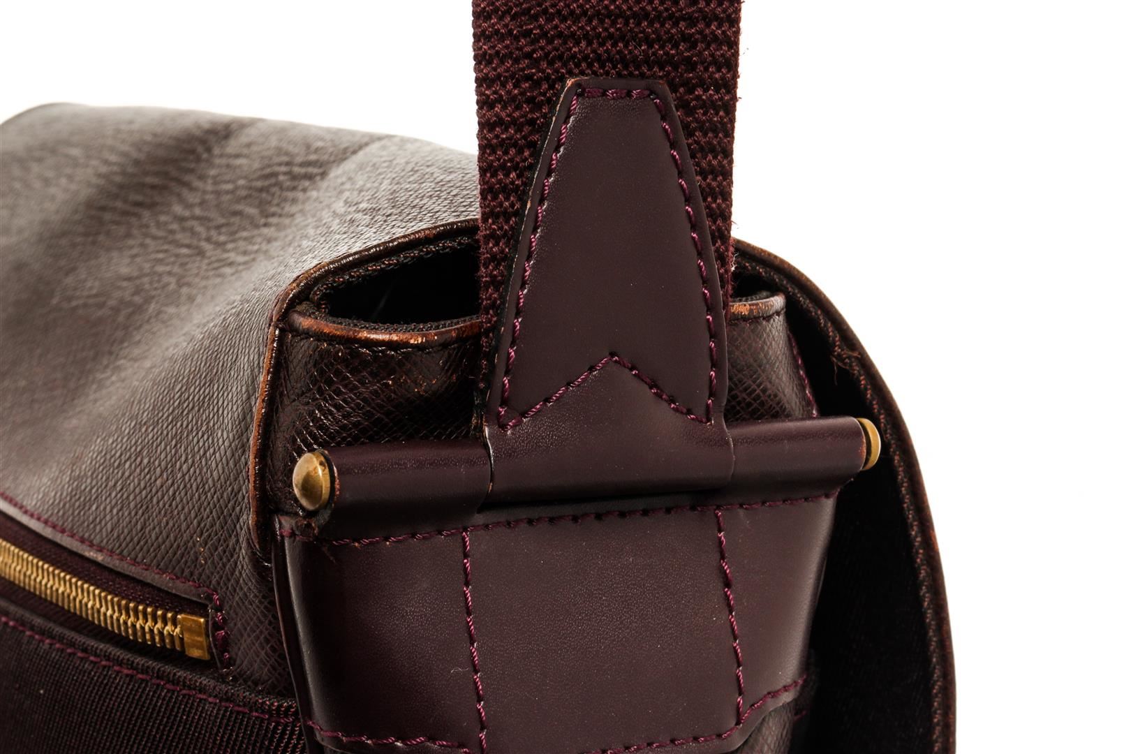 One Louis Vuitton Gray Taiga Leather Abbesses Messenger Bag. Item is sold AS-IS. All available information is listed in the description and shown in the photo. Louis Vuitton Gray Taiga Leather Abbesses messenger features gold-tone hardware, nylon adjustable shoulder strap, red canvas lining, three interior pockets, flap top with elastic loop closure.