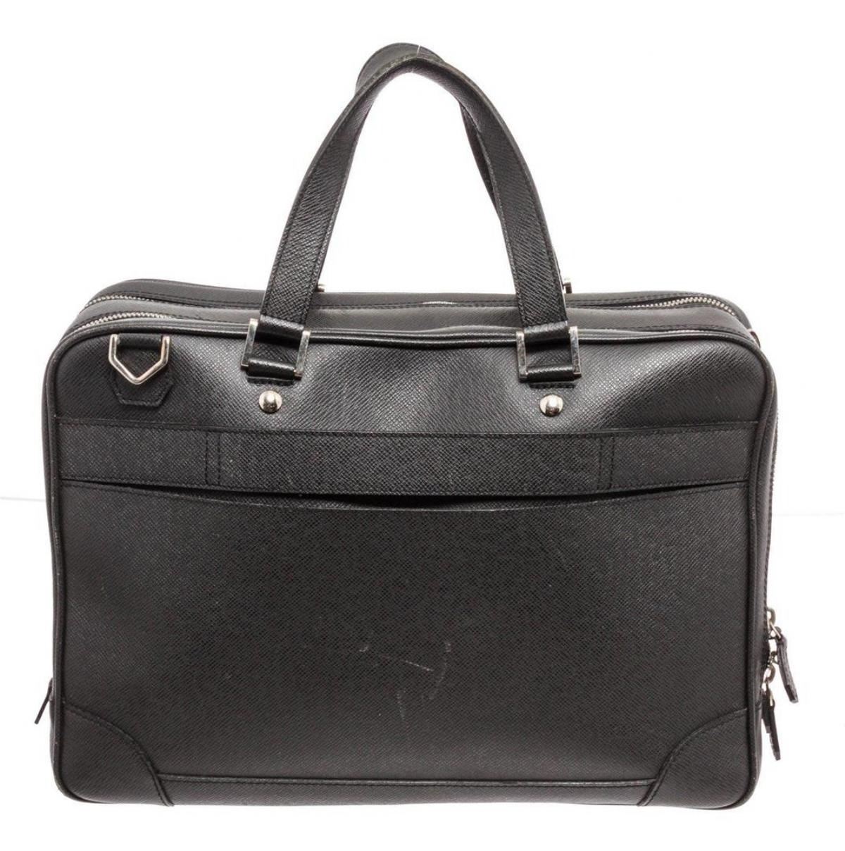 Louis Vuitton Gray Taiga Leather Briefcase with gold-tone hardware, tan vachetta leather trim, three interior compartments pocket, dual top handle, zipper closure. Measurements: Length: 11.5 in / 29 cm Width: 15 in / 38 cm 4.5 in / 11 cmCONDITION: Pre-Owned Good overall, please see photographs for detail.