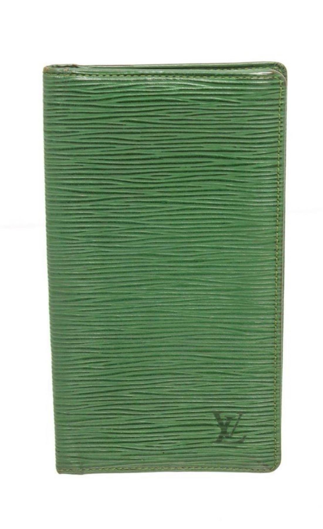 Louis Vuitton Green Epi Leather Long Card Wallet with gold-tone hardware, trim tan vachetta leather, interior compartments pockets and bifold closure. Measurements: Length: 0.5 in / 1 cm Width: 7 in / 18 cm 4 in / 10 cmCONDITION: Pre-Owned Good overall, please see photographs for detail.