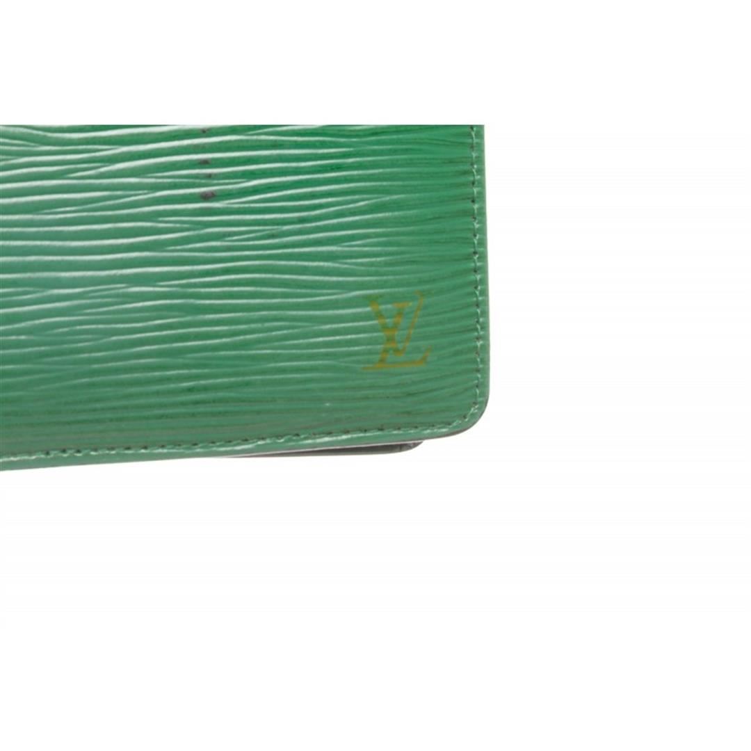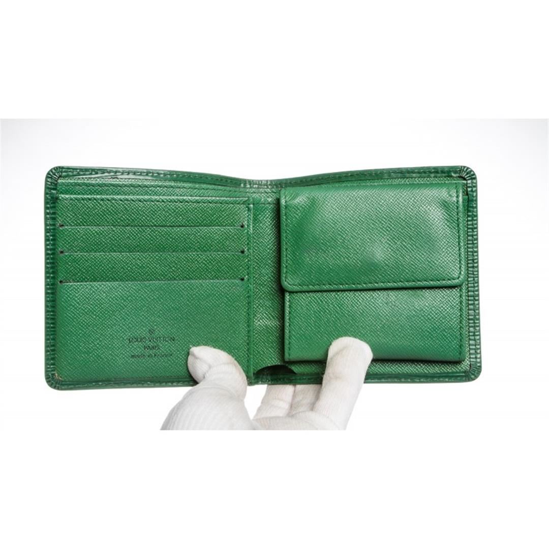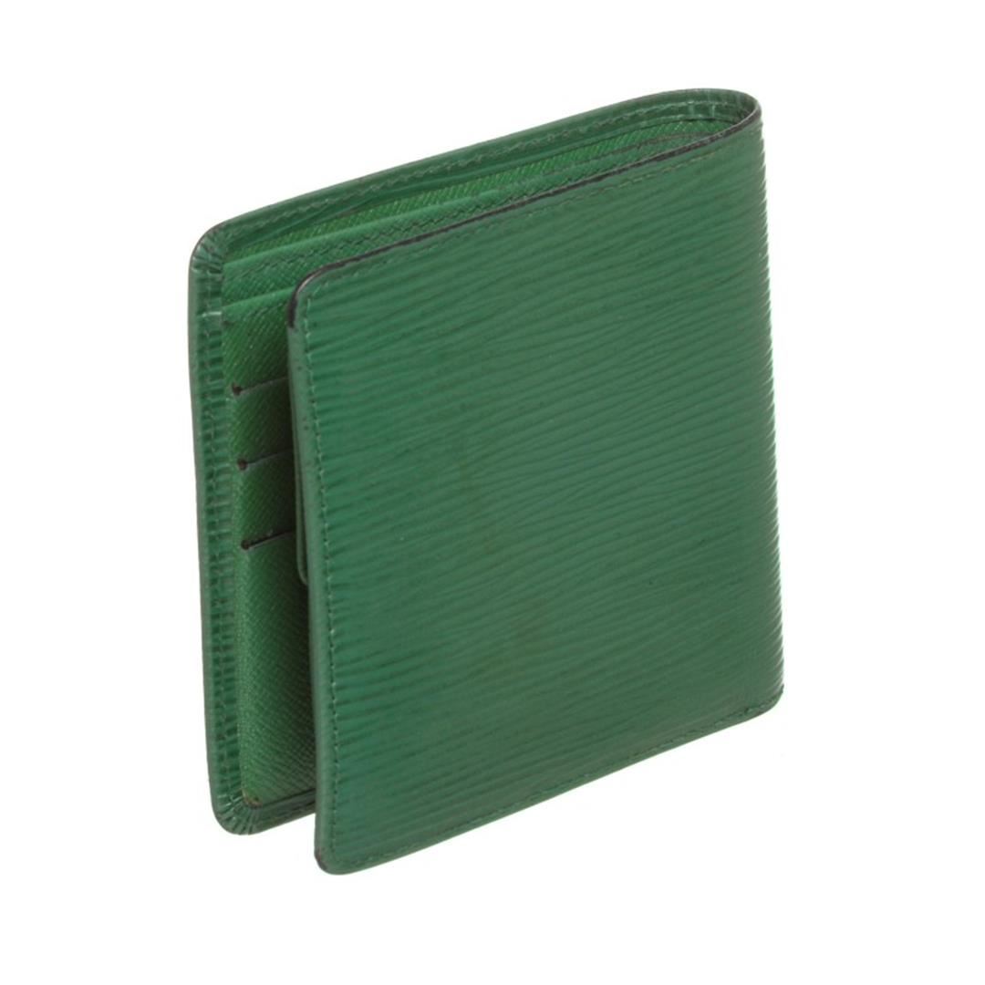 Louis Vuitton epi leather Marco men's wallet contains four credit card slots, two bill pockets, one side slip pocket and a coin pocket with a snap button closure. Item is pre-owned.