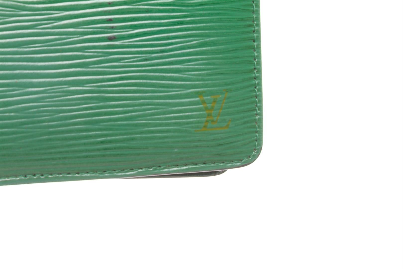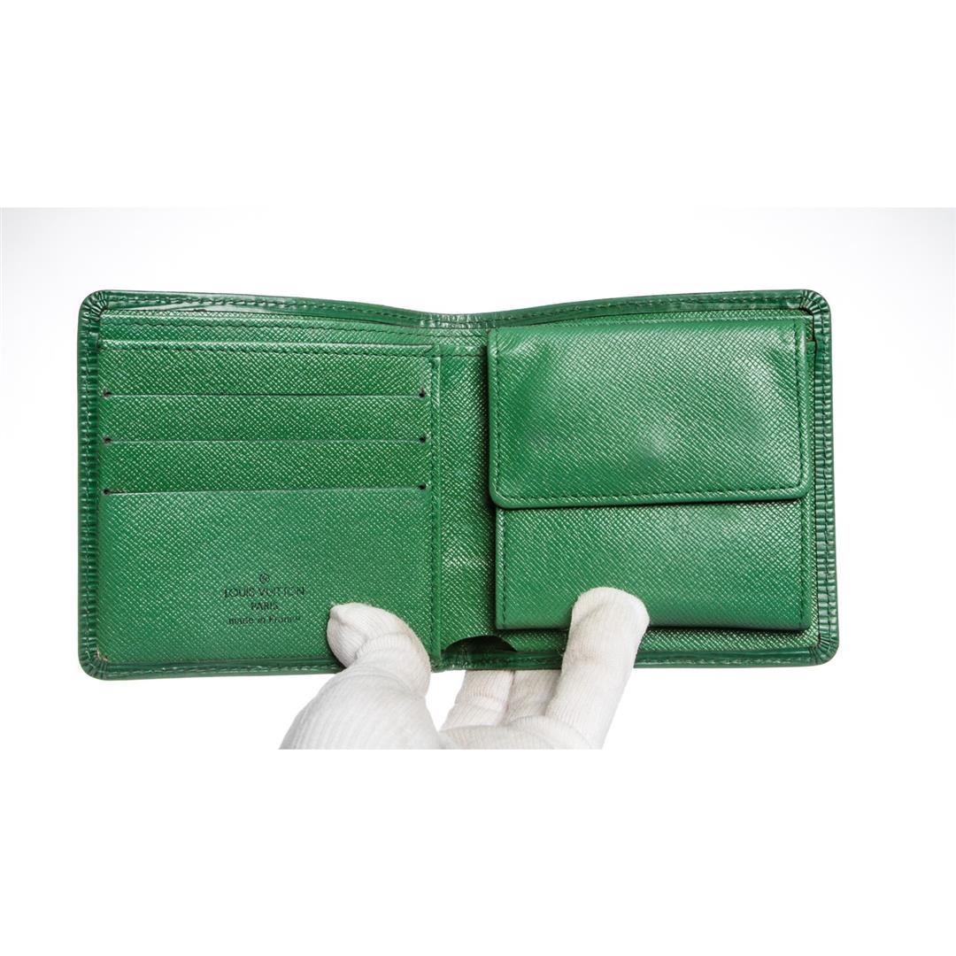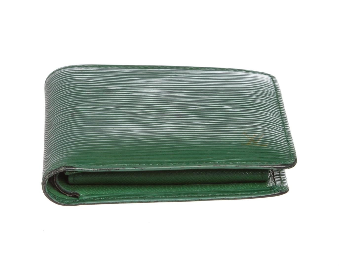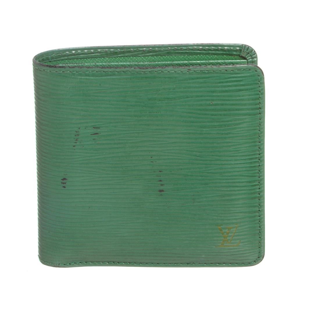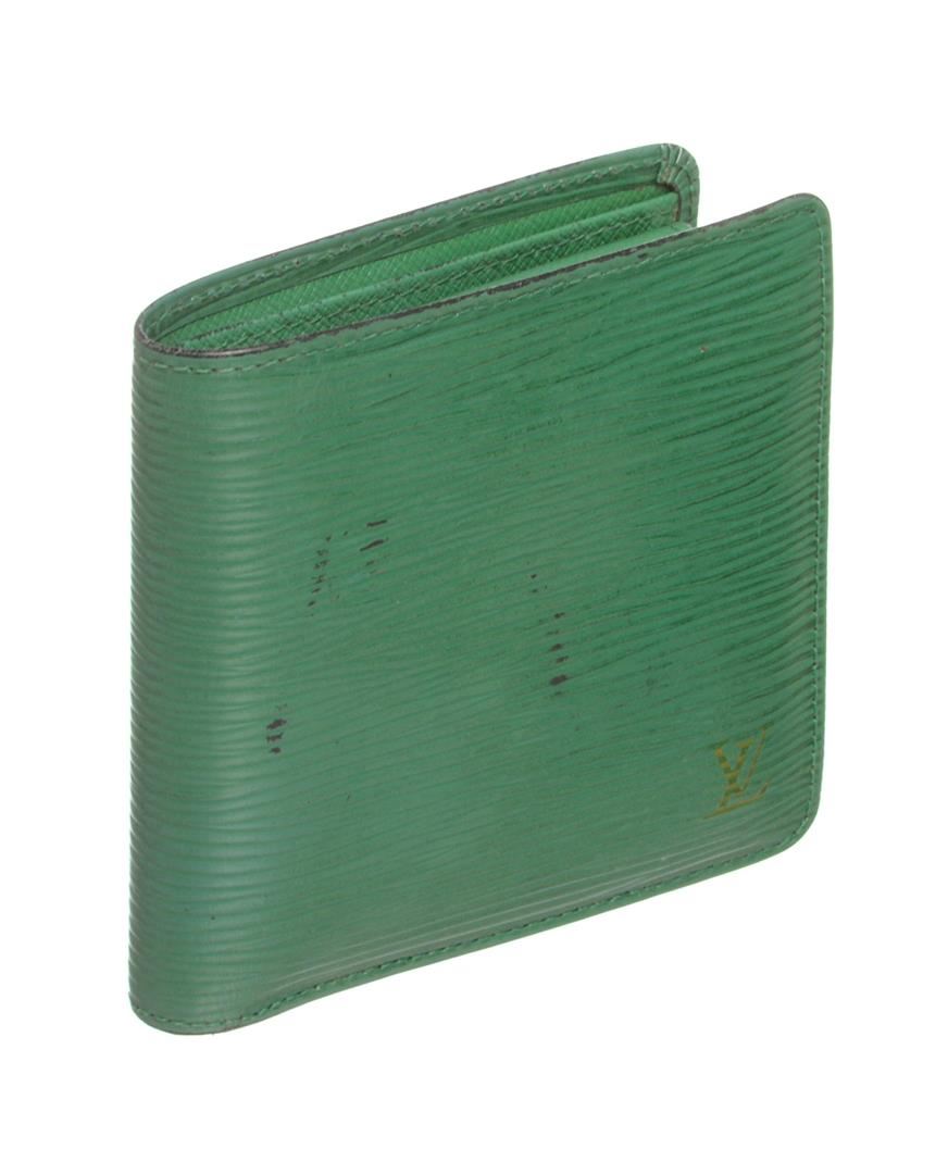 Louis Vuitton epi leather Marco men's wallet contains four credit card slots, two bill pockets, one side slip pocket and a coin pocket with a snap button closure. Authentic.