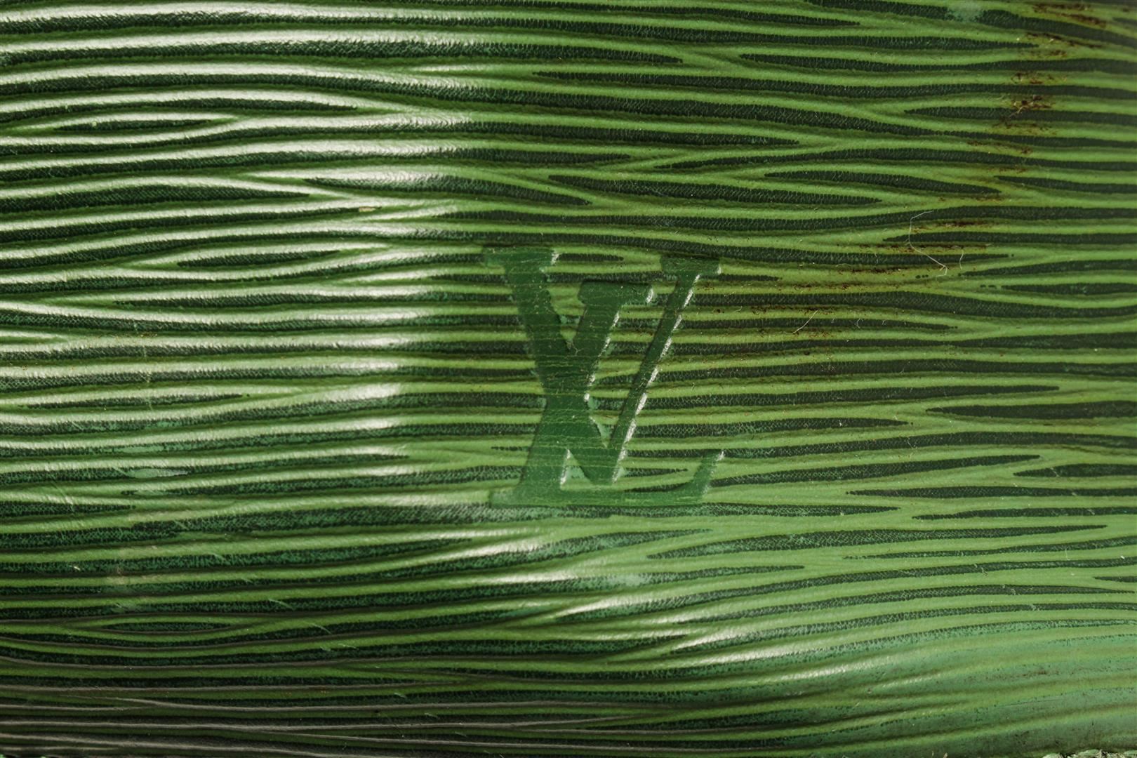 One Louis Vuitton Green Epi Leather Noe PM Bucket Bag. Item is sold AS-IS. All available information is listed in the description and shown in the photo. Louis Vuitton Green Epi Leather Noe PM Bucket Bag with adjustable shoulder strap, gold tone hardware, suede lining and drawstring closure.