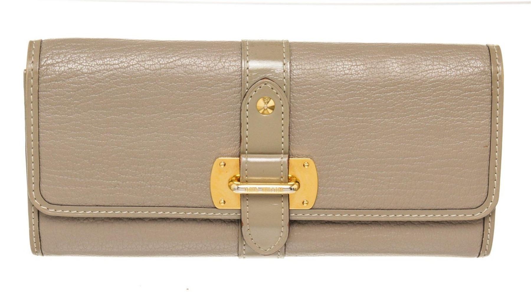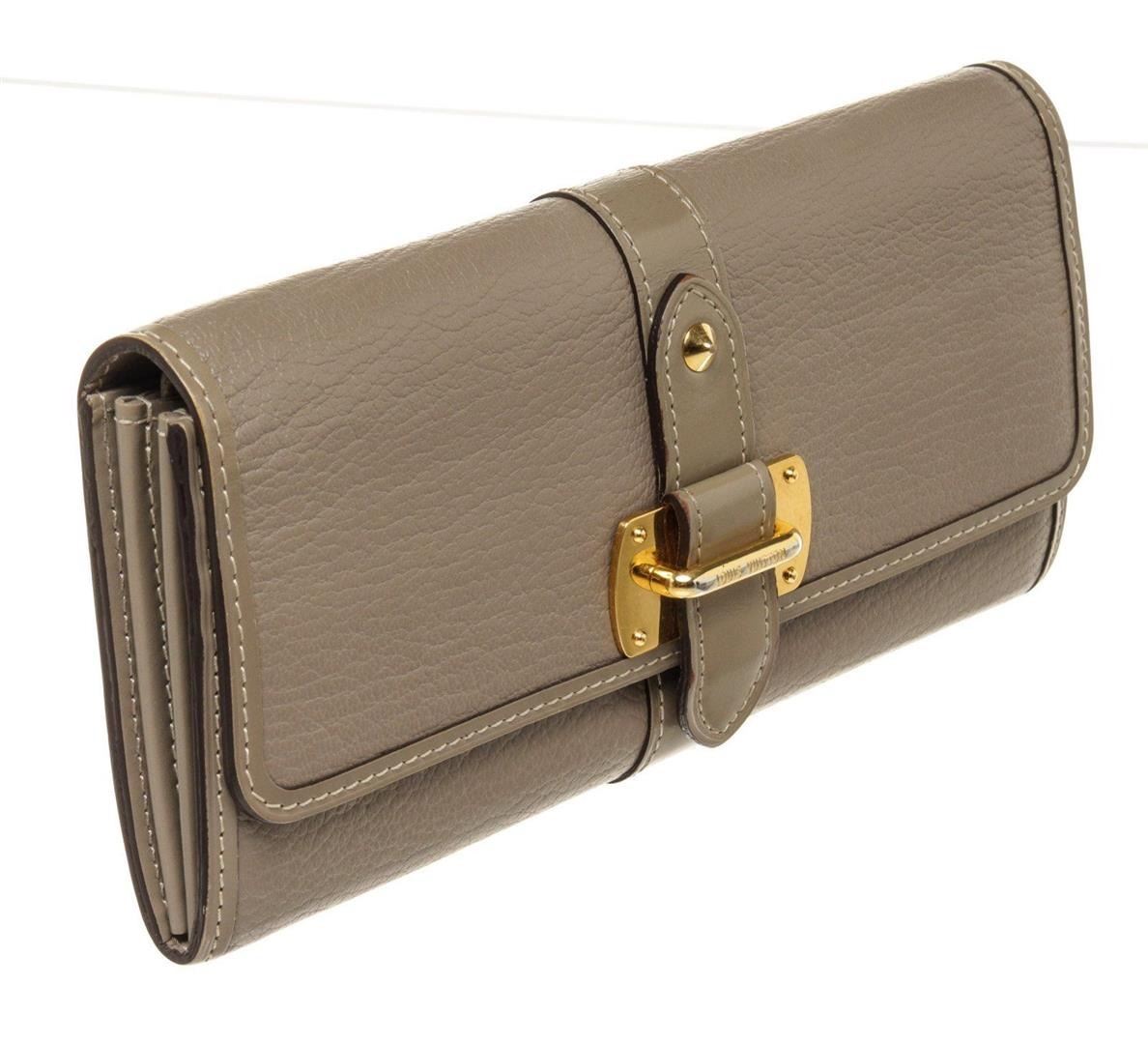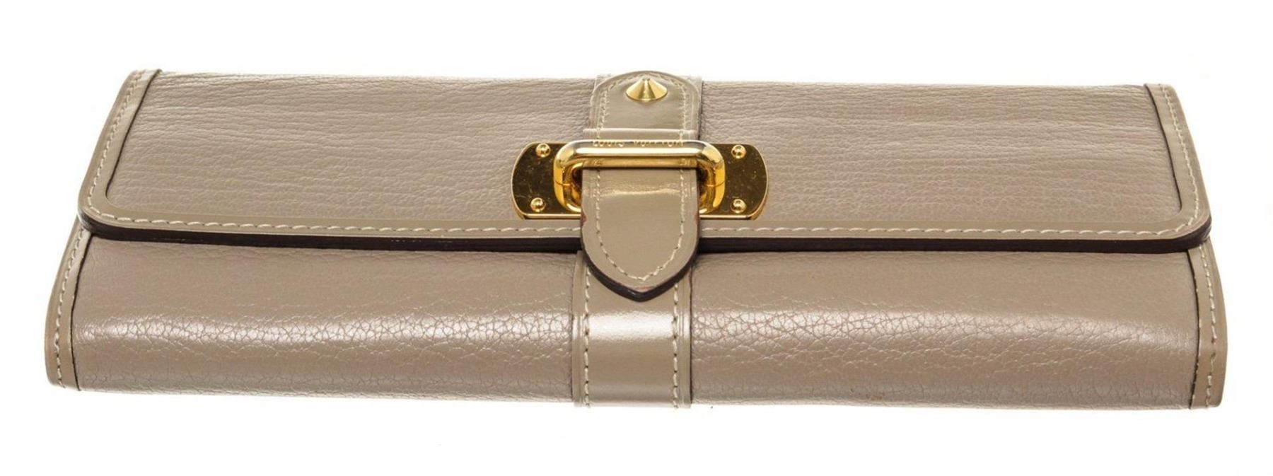 Louis Vuitton Green Leather Le Fabuleux Wallet with monogram canvas, gold-tone hardware, trim tan vachetta leather, interior three compartments pockets and flap closure.