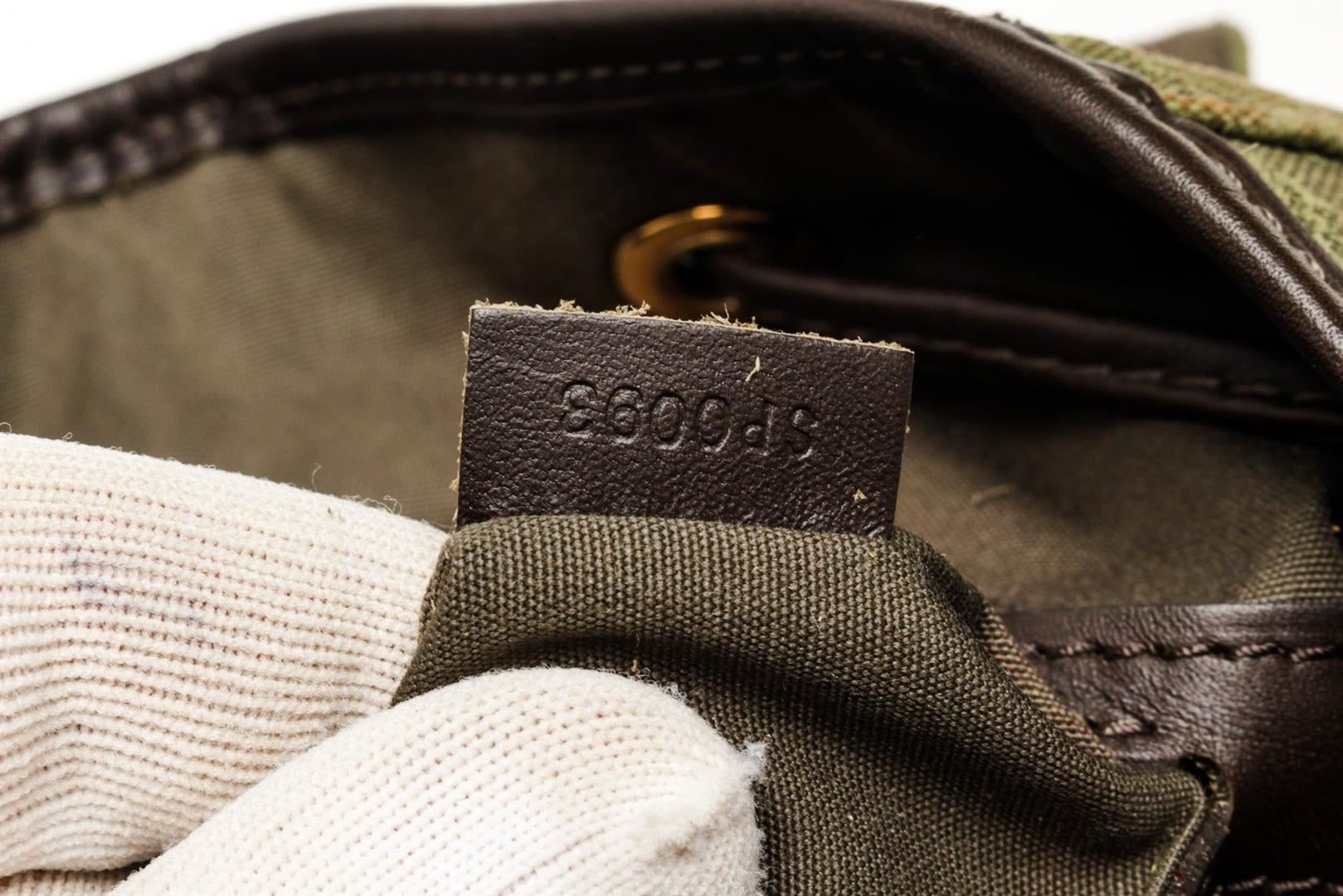 Louis Vuitton Green Monogram Montsouris GM Backpack Bag with monogram canvas, gold-tone hardware, tan vachetta leather, exterior zip pockets, interior slip pocket, shoulder strap and drawstring closure.
