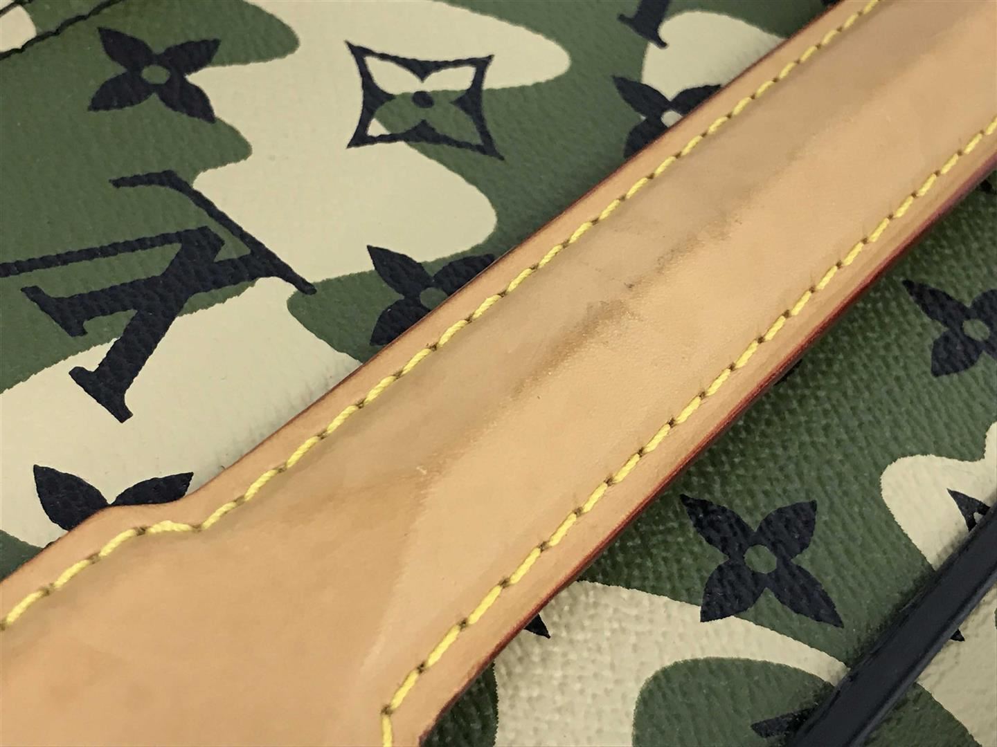 One Louis Vuitton Green Multicolor Monogramouflage Pegase 60cm Rolling Luggage. Item is sold AS-IS. All available information is listed in the description and shown in the photo. Men's olive green and multicolor Monogramouflage coated canvas Louis Vuitton Pgase 60 with gold-tone hardware, retractable top handle, dual leather side handles, tan vachetta leather trim, dual exterior pockets at front; one with concealed zip closure, dual wheels and protective feet at base, black nylon lining, dual velcro compression straps, single zip compartment at interior wall and two-way zip-around closure. Height: 21" Width: 15" Depth: 7" Retractable Handle Drop: 17" Handle Drop: 2"