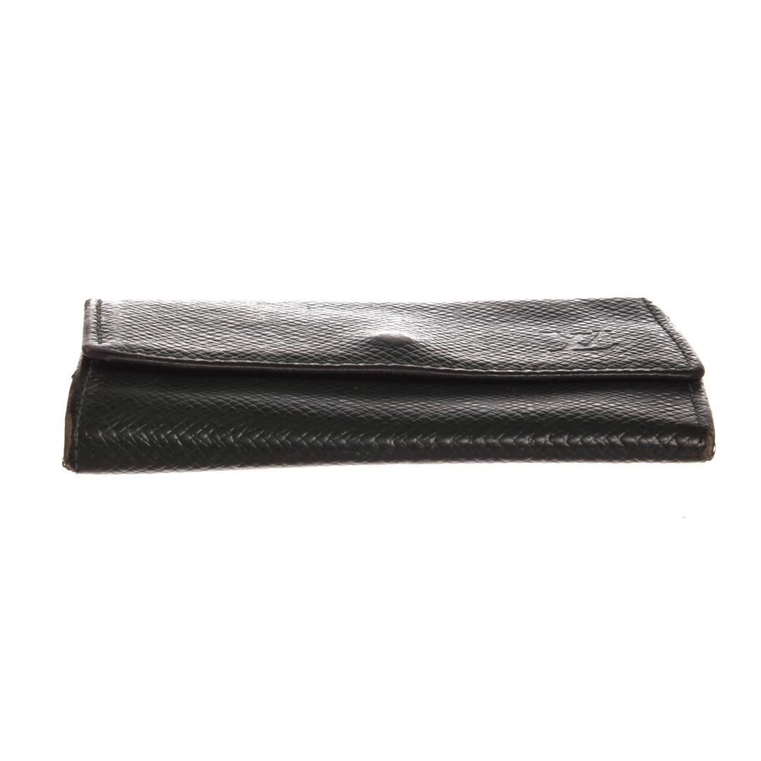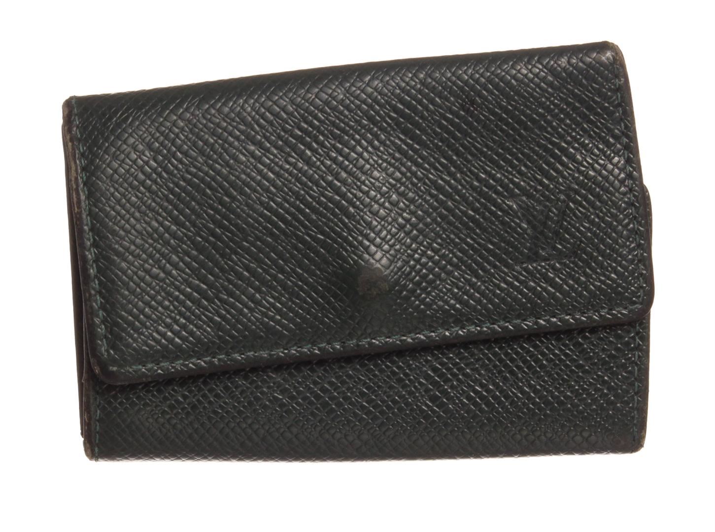 Louis Vuitton dark green Taiga Leather 6 Key Holder with leather interior featuring six key holders and snap closure at front.
