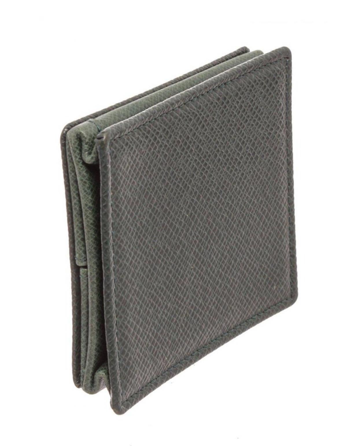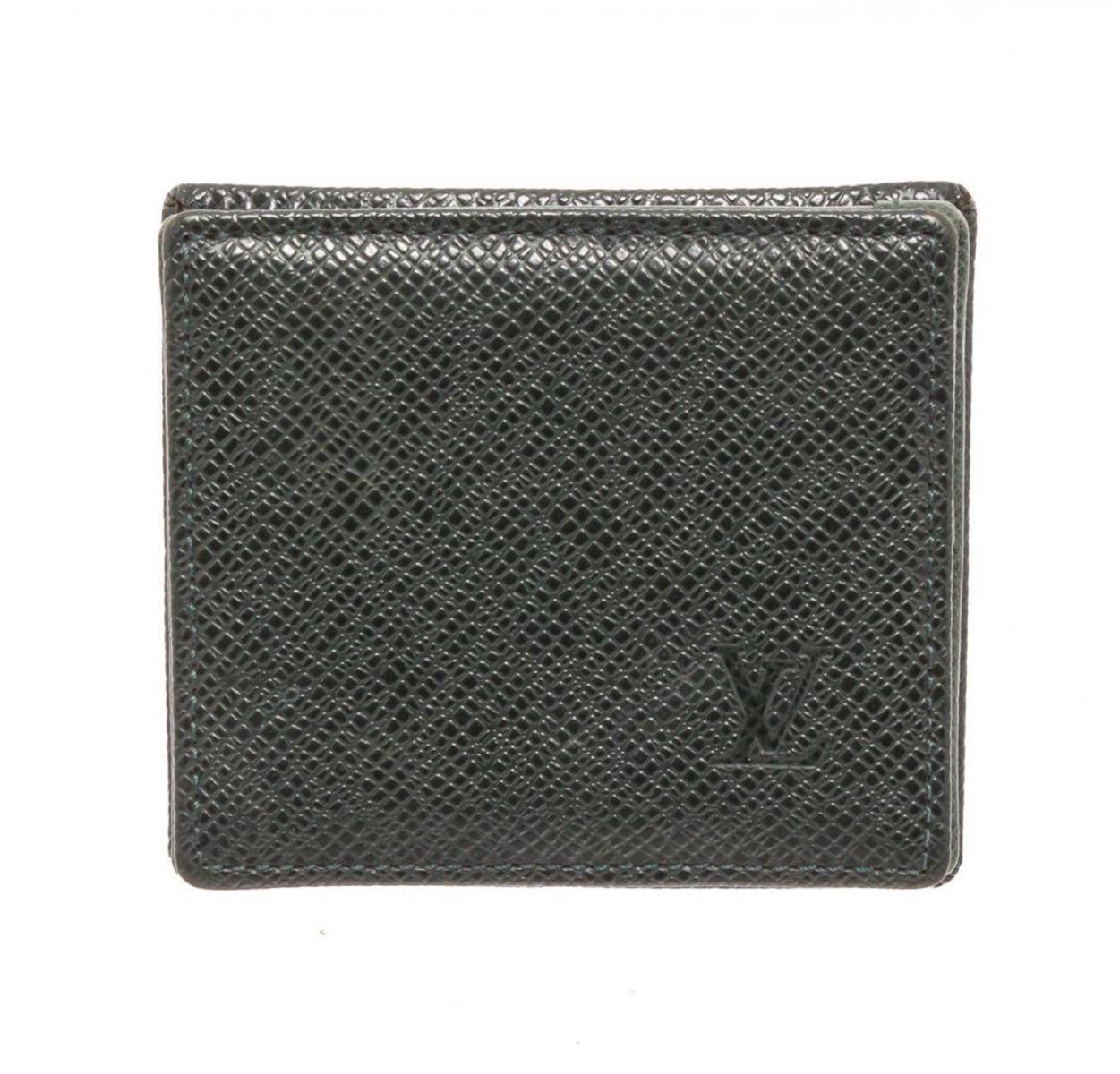 Louis Vuitton Green Taiga Leather Boite Coin Case Wallet with gold-tone hardware, embellishments embossed logo, tonal taiga lining, one open coin compartment and overall snap closure. Measurements: Length: 3 in / 8 cm Width: 0.5 in / 1 cm 3 in / 8 cmCONDITION: Pre-Owned Good overall, please see photographs for detail.