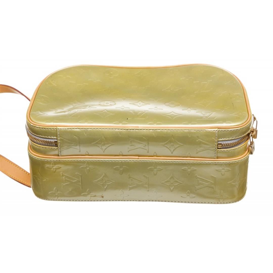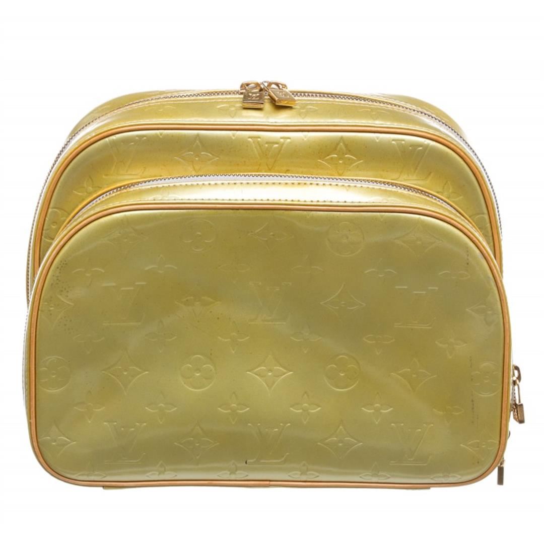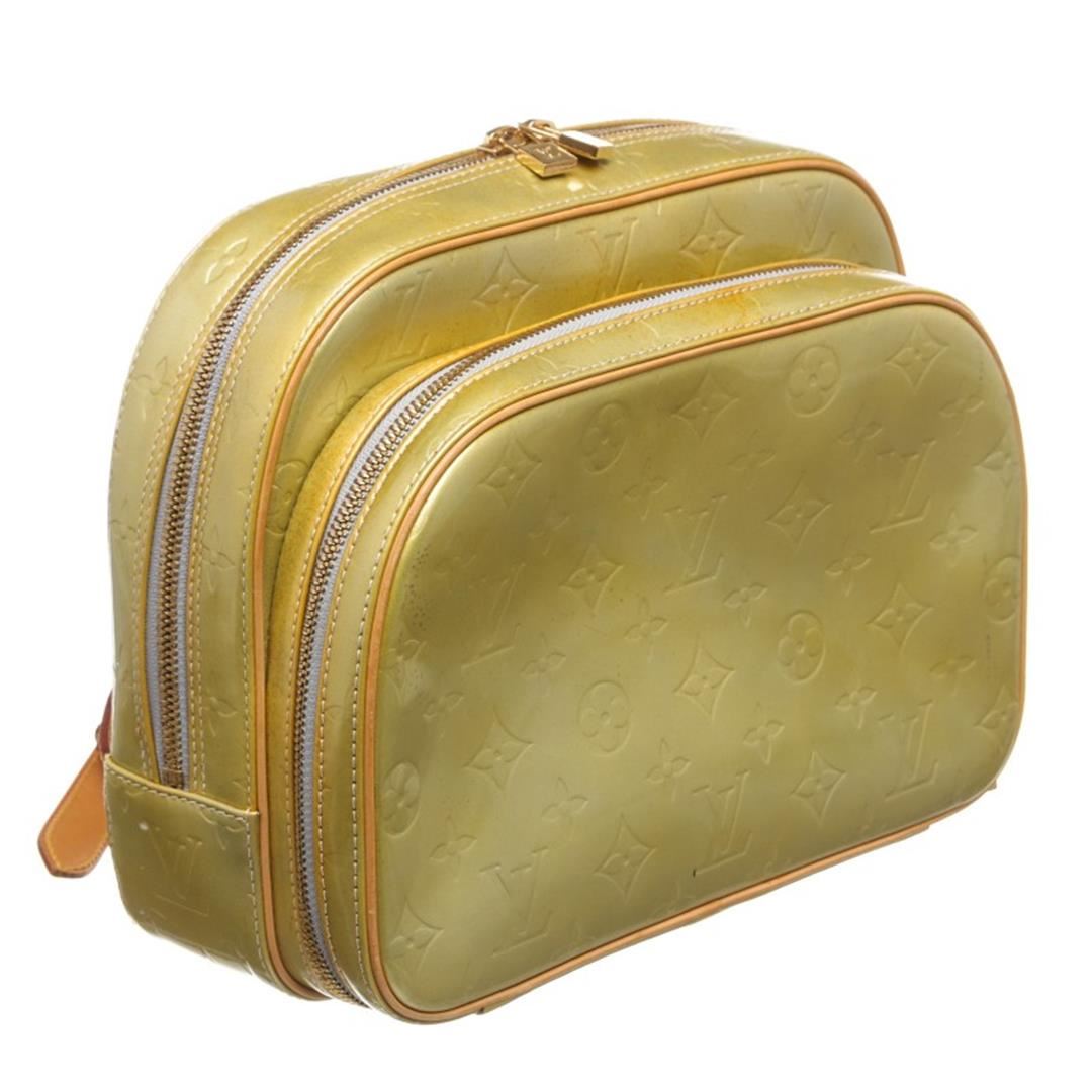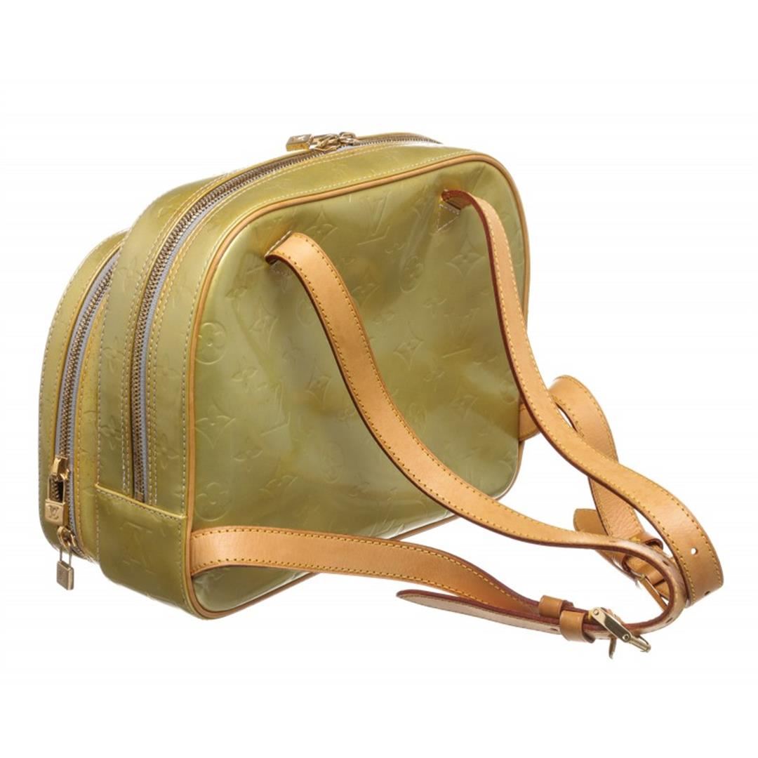 Monogram Vernis leather Louis Vuitton Murray backpack with brass hardware, tan vachetta leather trim, dual shoulder straps, exterior zip pocket, leather lining, single slit pocket at interior and zip closure at top. Item is pre-owned.