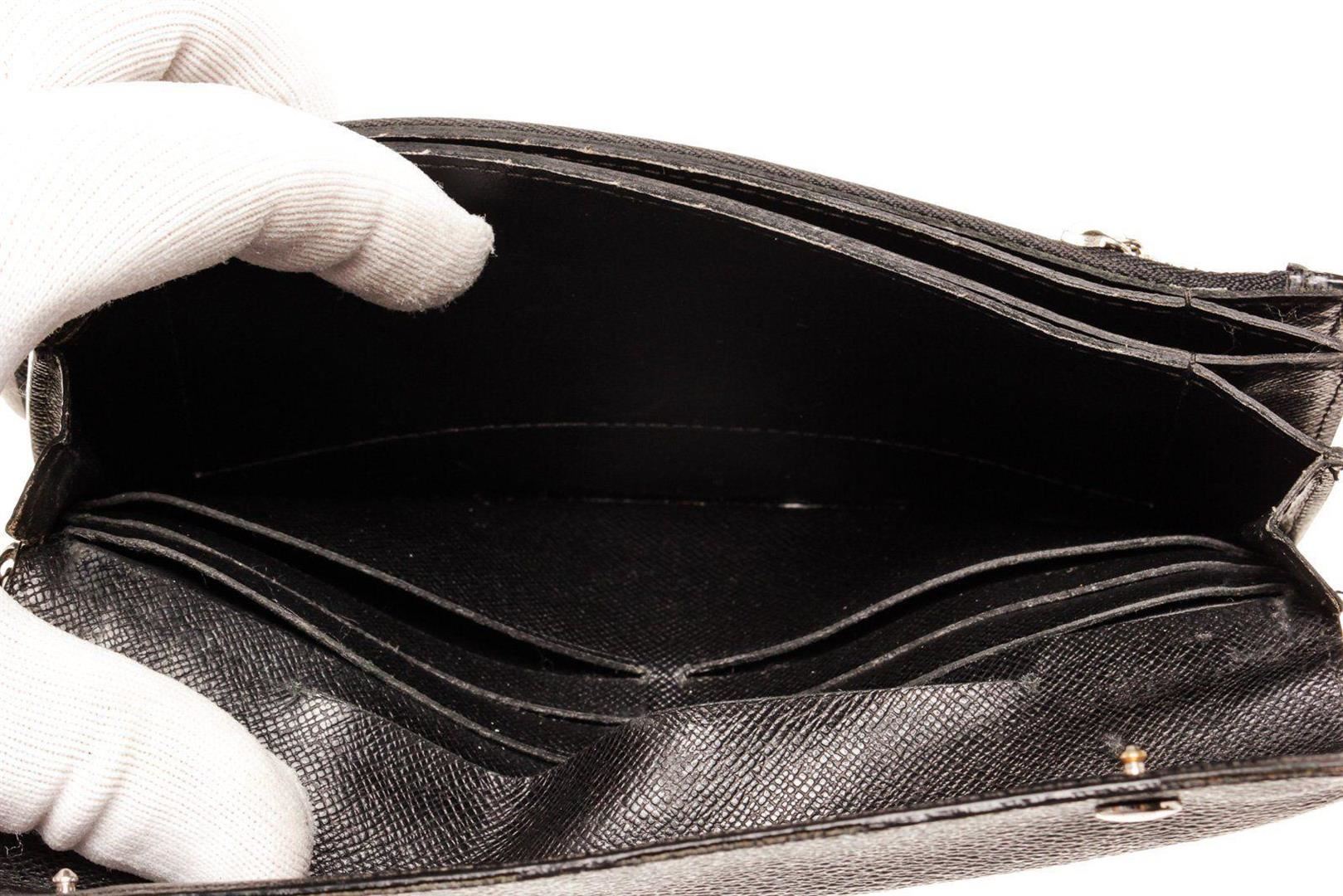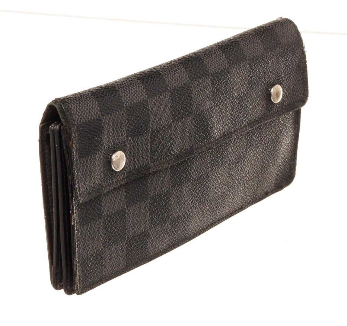 Louis Vuitton Grey Black Damier Canvas Accordian Wallet. All available information is listed in the description and shown in the photos. Louis Vuitton Grey Black Damier Canvas Accordian Wallet with silver-tone hardware, leather lining & three interior pockets with card slots, snap closure.