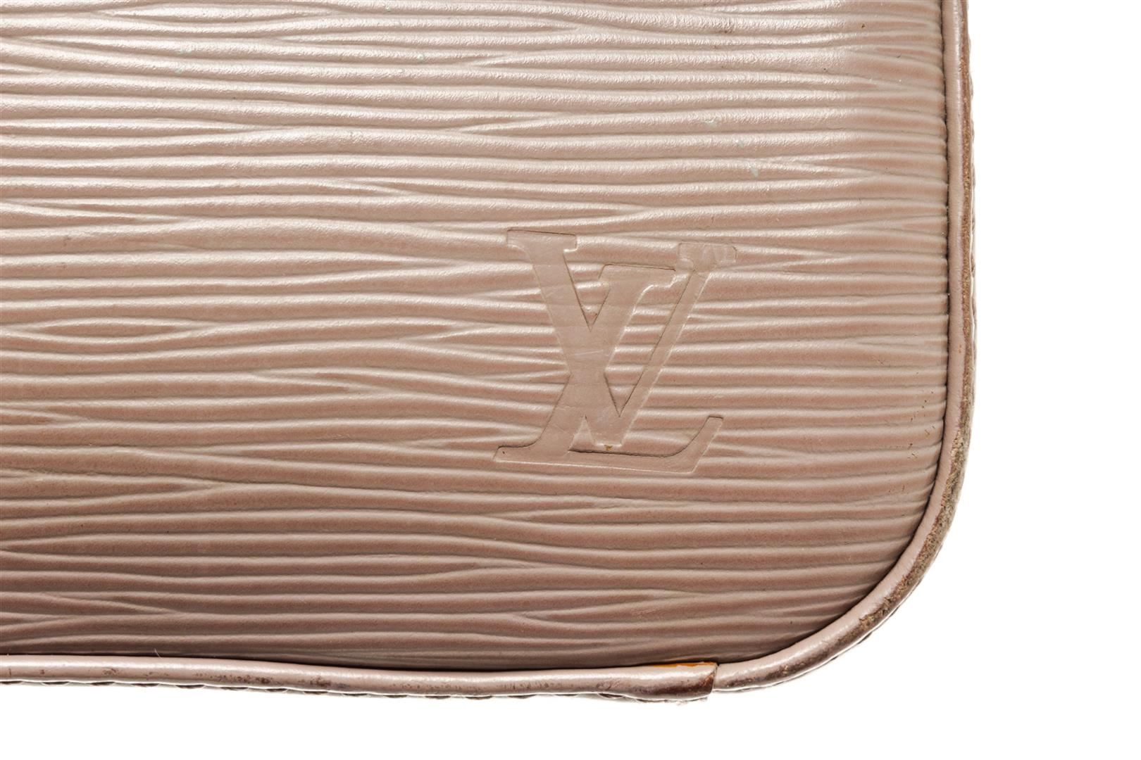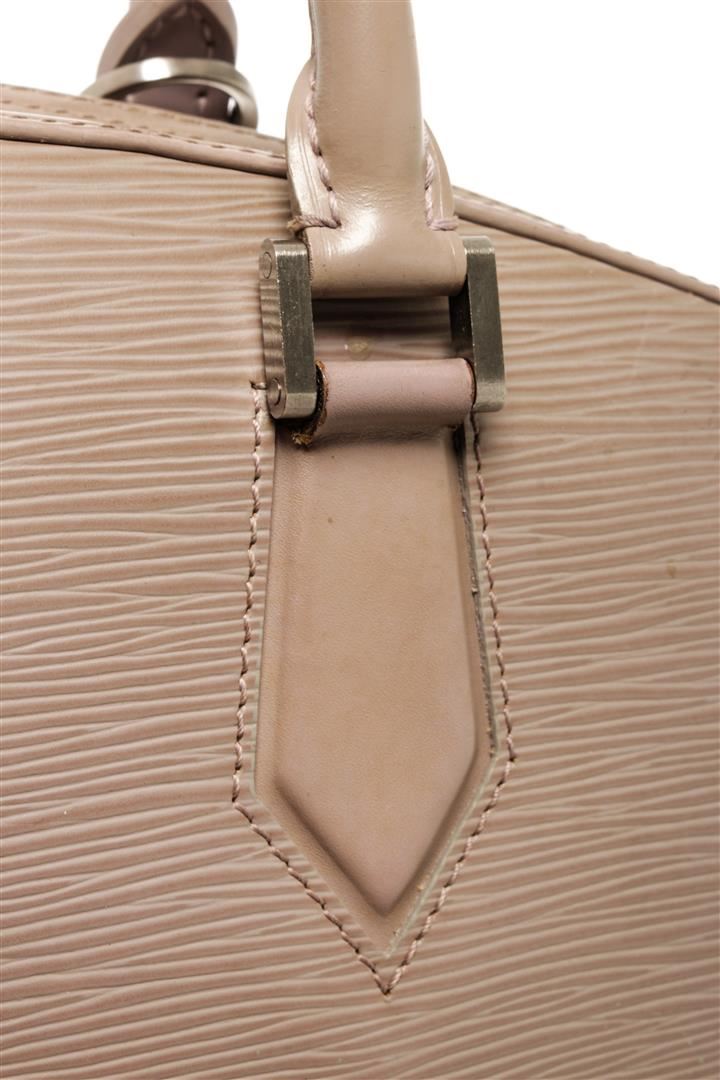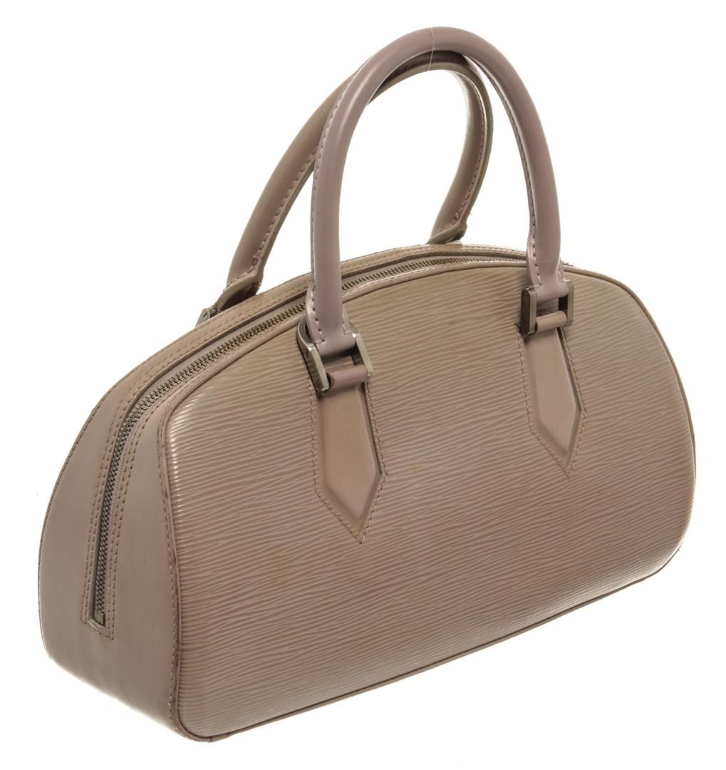 One Louis Vuitton Grey Jasmine Epi Leather Bag. Item is sold AS-IS. All available information is listed in the description and shown in the photo. Louis Vuitton Grey Jasmine Epi Leather Bag with top handle, grey suede lining, slip interior pocket, silver hardware, zipper closure.