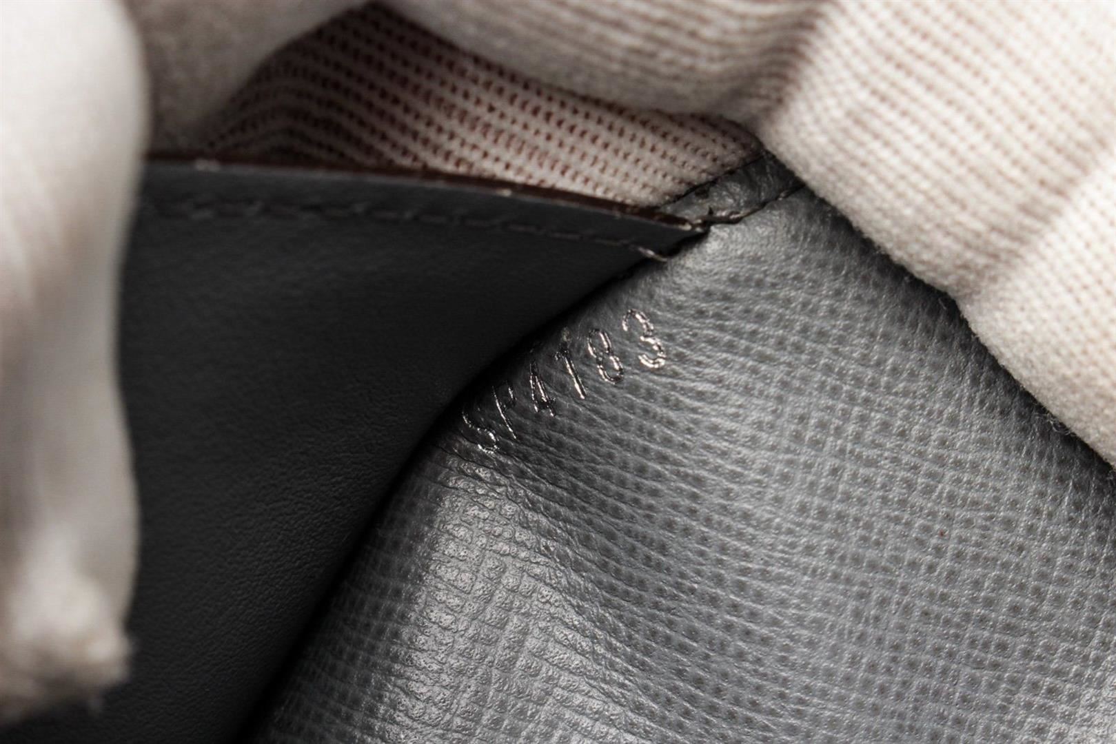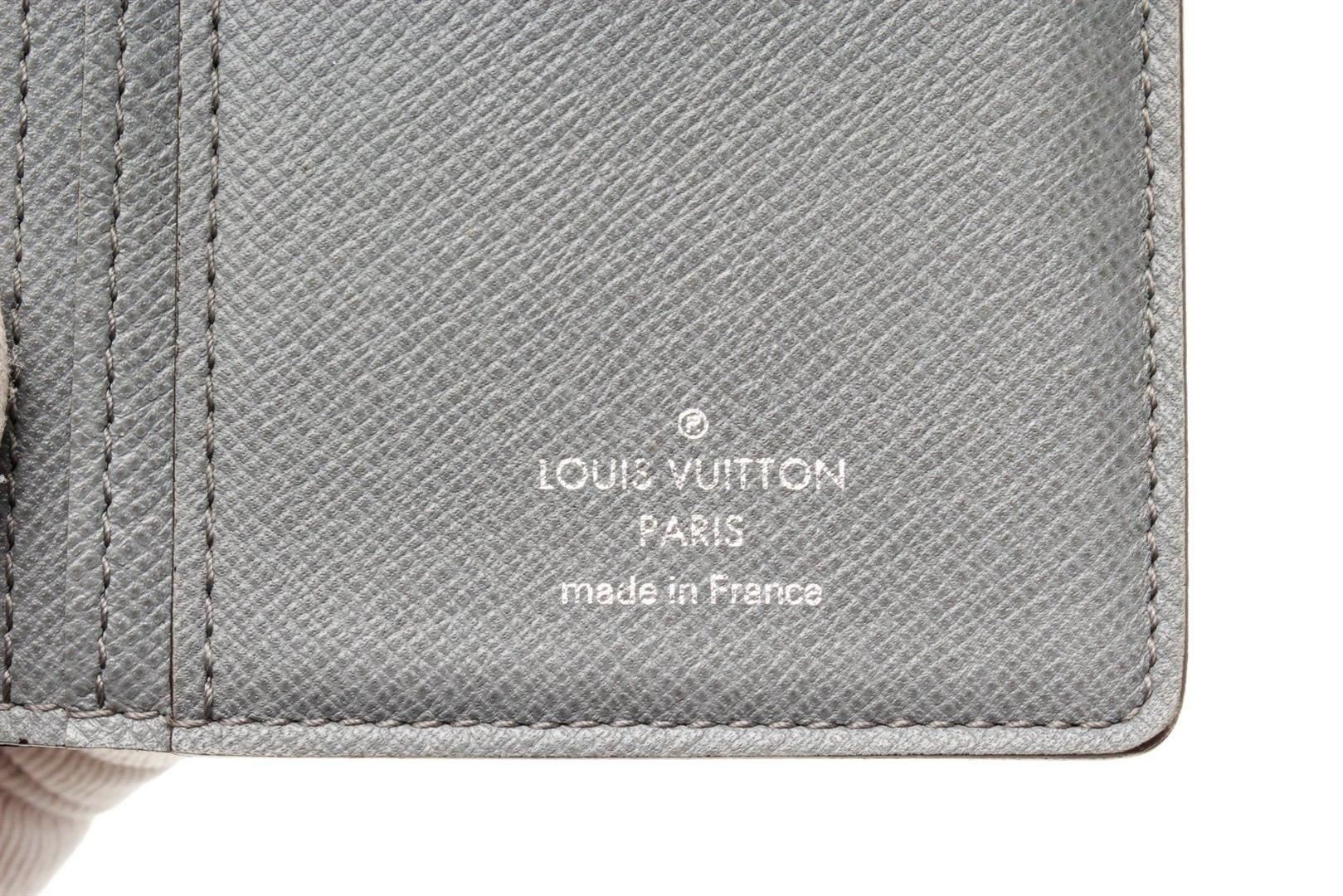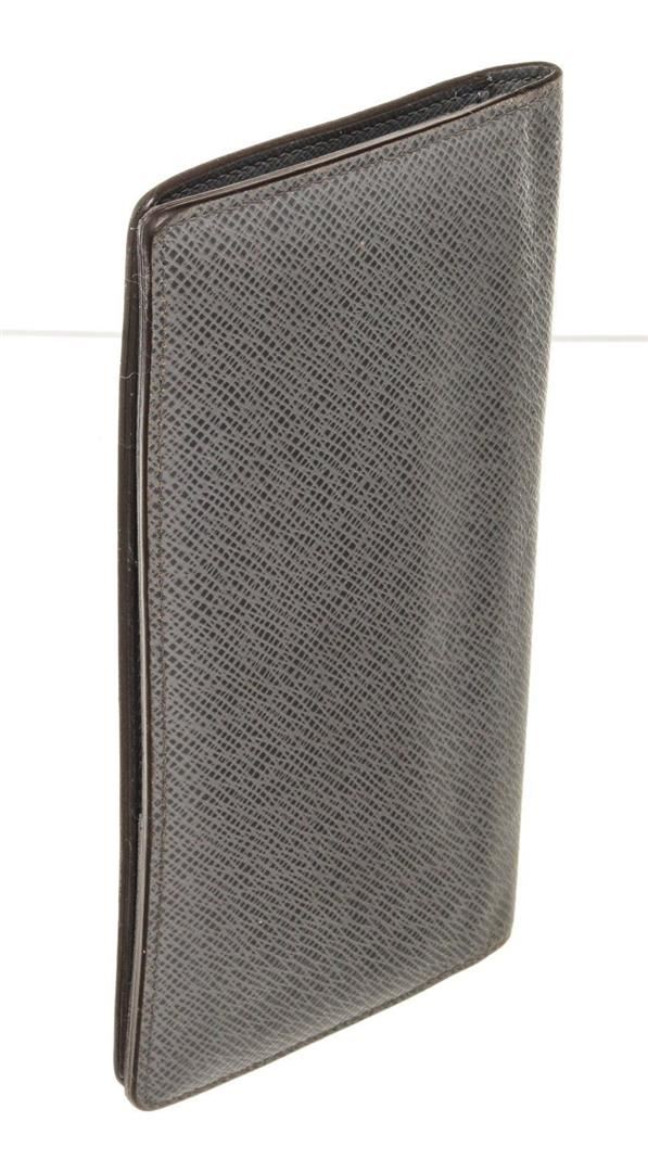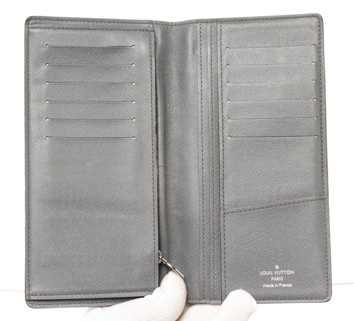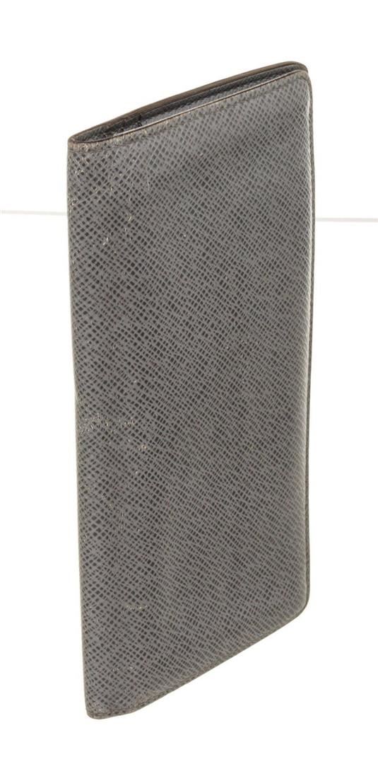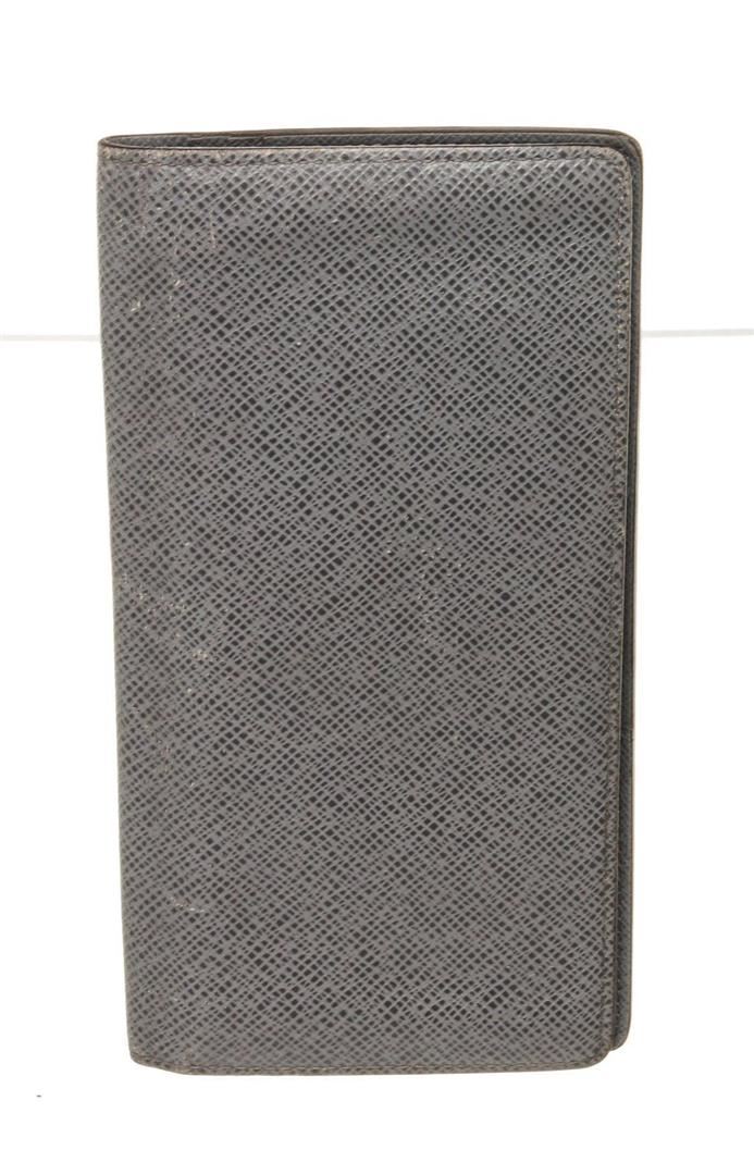 Louis Vuitton Grey Leather Brazza Wallet with leather, gold-tone hardware, trim tan vachetta leather, interior card holder pocket, leather lining and flap closure.