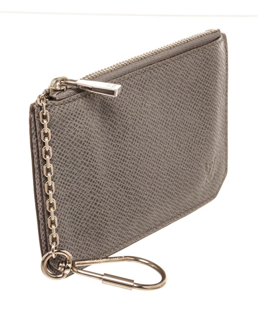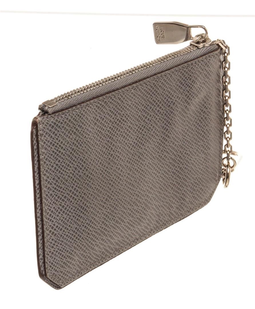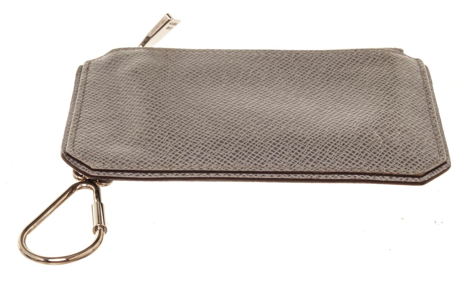 Louis Vuitton Grey Leather Pochette Cles Wallet with leather, gold-tone hardware, trim tan vachetta leather, interior slip pocket, zipper closure.