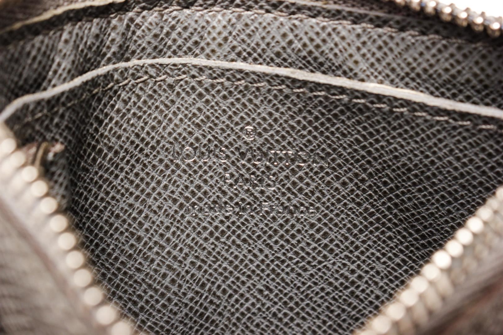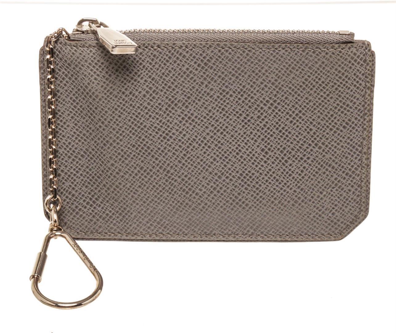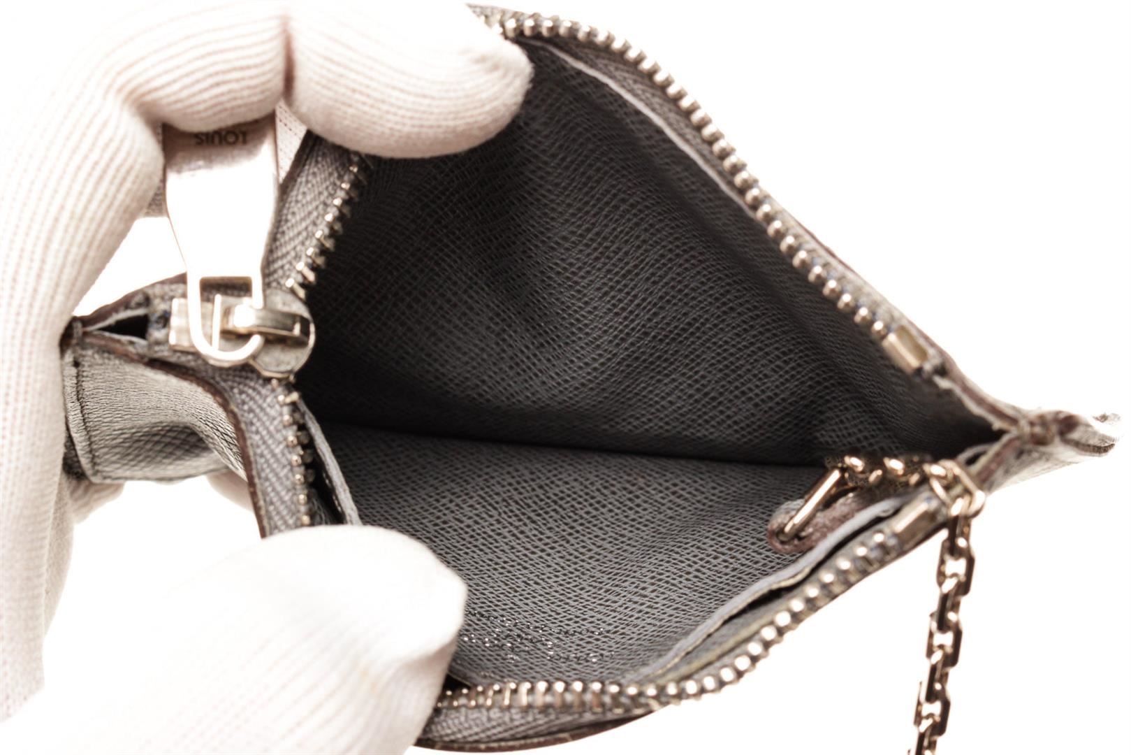 Louis Vuitton Grey Leather Pochette Cles Wallet with leather, gold-tone hardware, trim tan vachetta leather, interior slip pocket, zipper closure.
