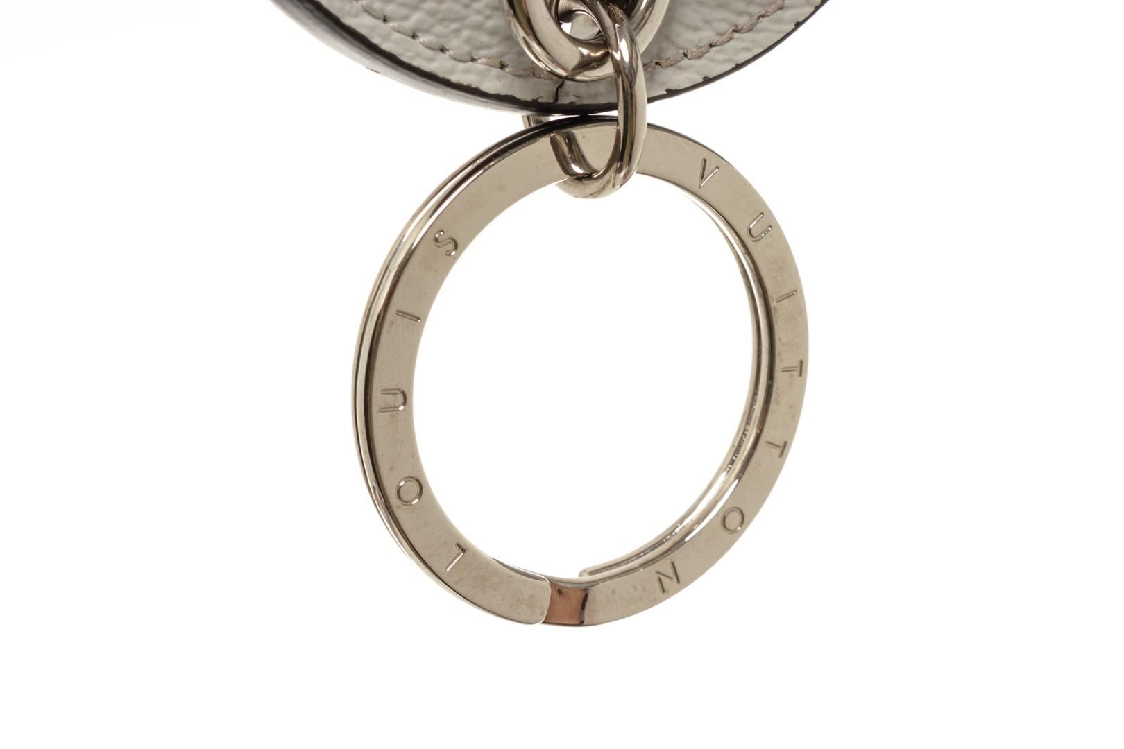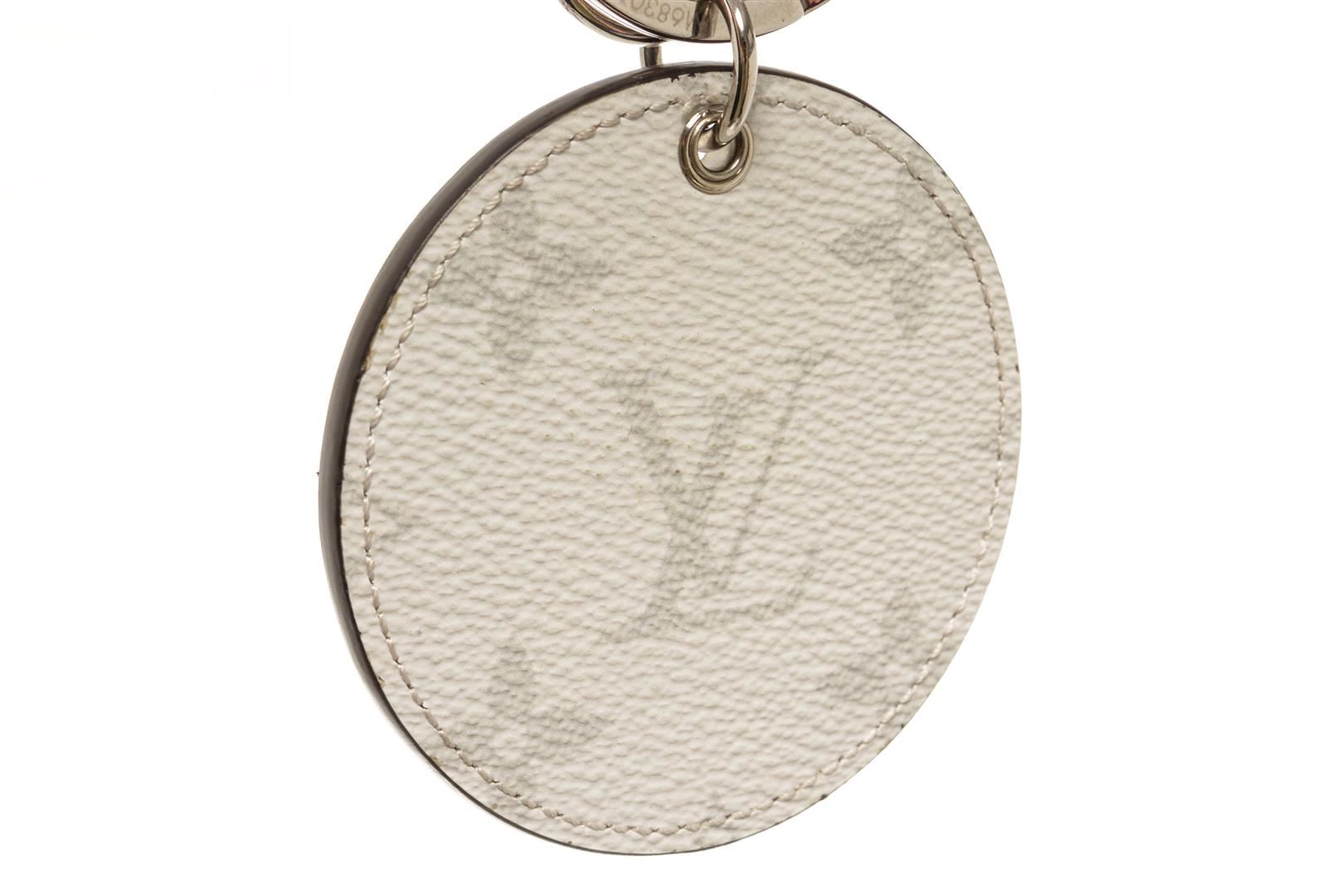 One Louis Vuitton Grey Monogram Illustre Keyholder. Item is sold AS-IS. All available information is listed in the description and shown in the photo. Louis Vuitton Grey Monogram Illustre Keyholder with louis vuitton gray monogram canvas logo story limited edition round illustre keychain features gray monogram coated canvas, multicolor print at the back and silver-tone hardware. Height 2.75", Width 2.75" / 6.9 x 6.9 Cm